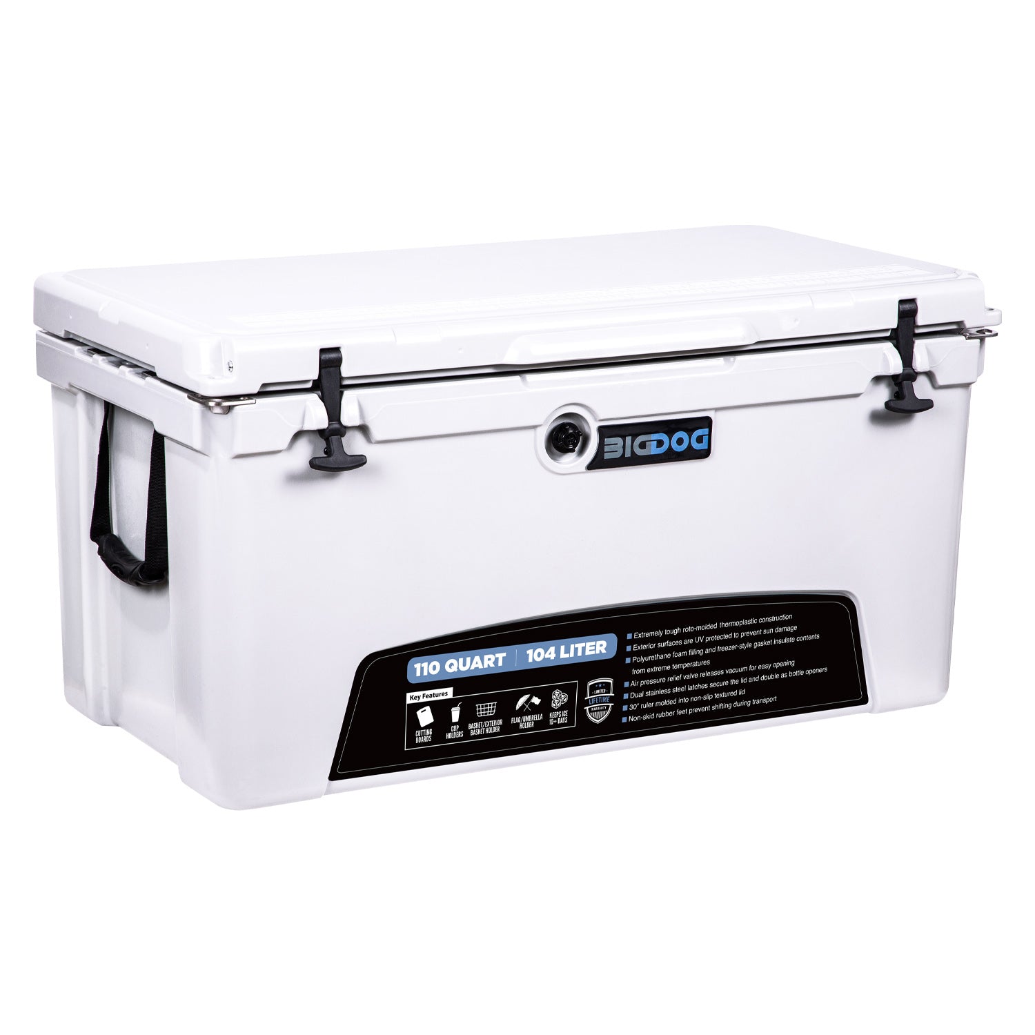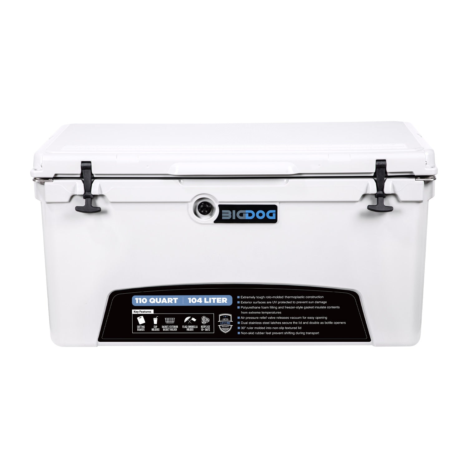 BigDog coolers are to designed to keep contents cold and provide years of top-notch service. In addition, BigDog coolers include a variety of accessories that are sure to come in handy whether you're tailgating, camping, fishing, or just hanging out with friends and family. All BigDog products are backed by a Limited Lifetime Warranty.