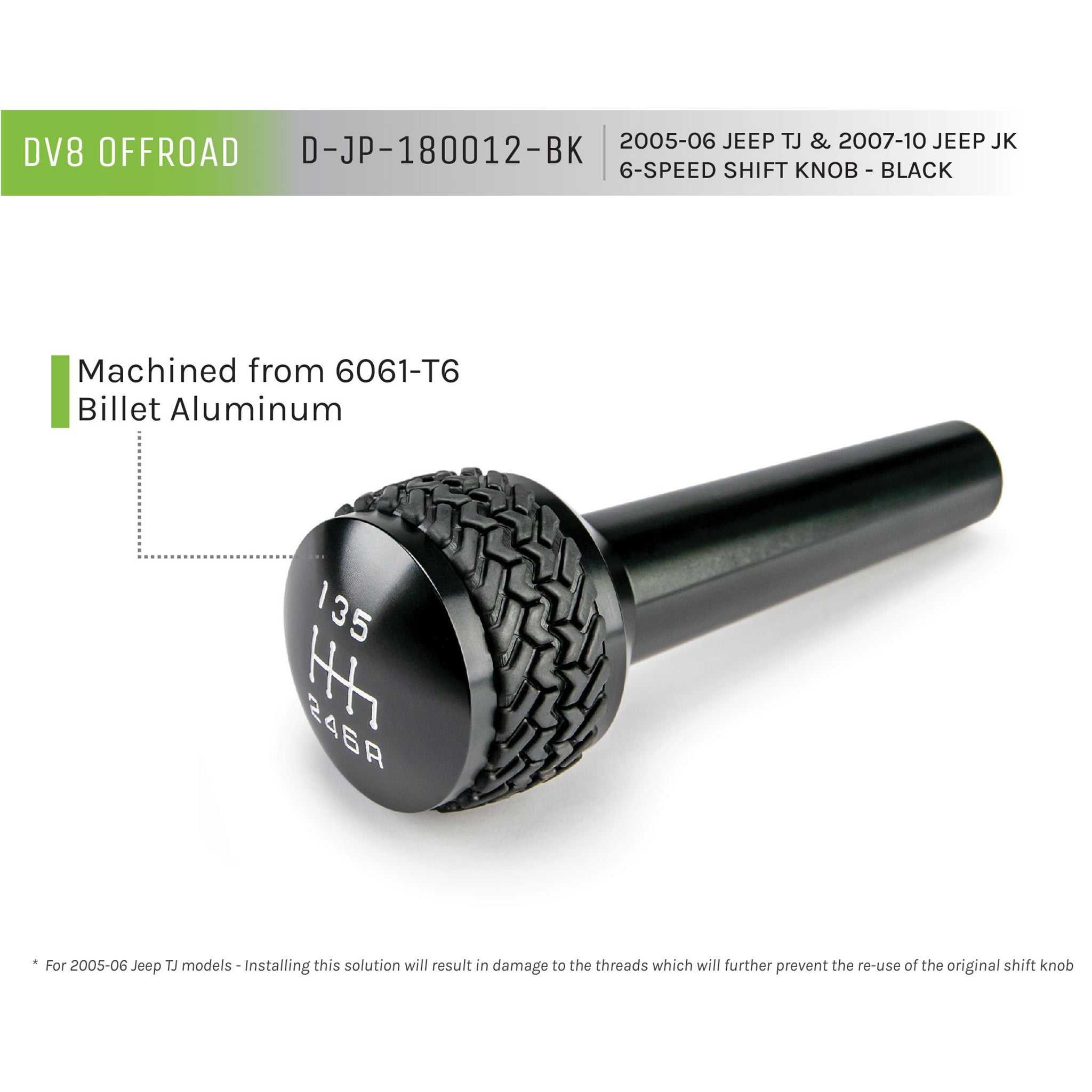 DV8 Offroad D-JP-180012-BK 6-Speed Shift Knob; Black