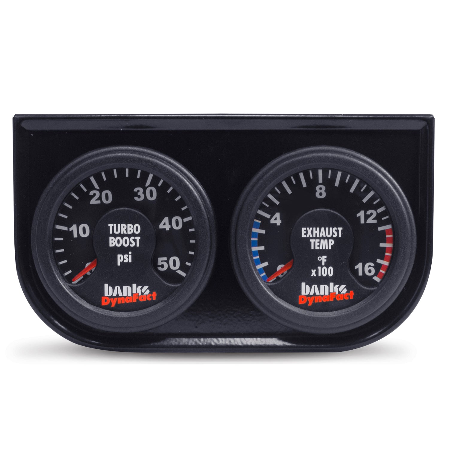 Banks exclusive DynaFact electronic gauges offer precision that can't be matched by mechanical gauges. The pyrometer provides exhaust-gas temperature (EGT) measurements that are accurate within +/-15 Degree Fahrenheit at maximum operating temperatures. The pyro's spring-loaded, jeweled movement is resistant to vibration and sports a lit, easy-to-read 0-1500 Degree Fahrenheit face. Banks 0-50 psi boost gauge monitors power and turbo performance. Includes 2-gauge mounting panel. Top-mount and/or pillar-mount options available DynaFact Electronic Gauge Assembly for use with 1998-2002 Dodge 5.9L (W-New AutoMind) Key Features: Superior Precision & Durability Engineered Performance Easy-to-Read DynaFact Electronic Gauges Electronically controlled 0-1500 Degree Pyrometer to track EGTs 0-50 psi Boost gauge to monitor power and turbo performance LED backlit Includes 2-gauge mounting panel 1-Year Limited Warranty CARB E.O. Not Required