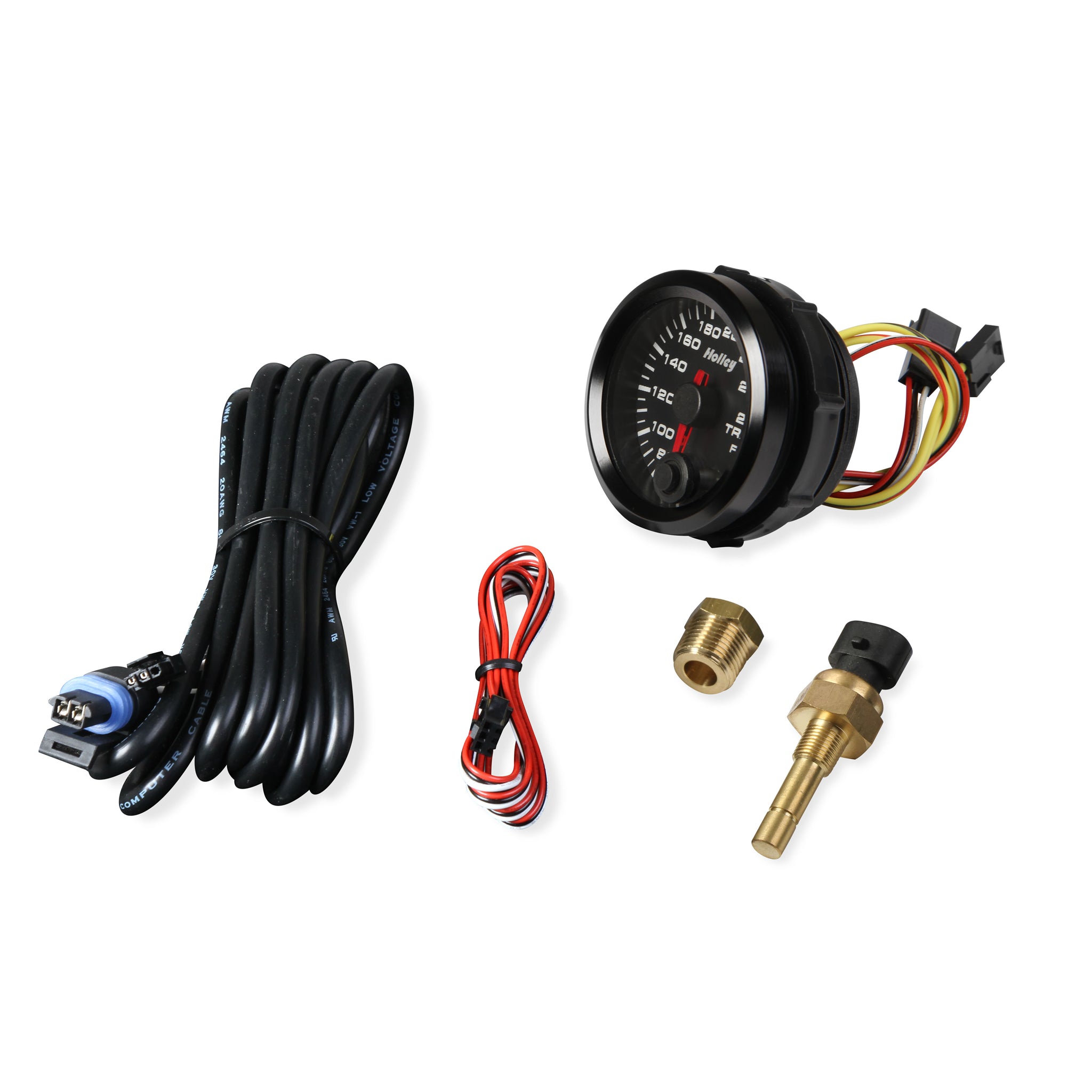 Analog Style Transmission Temperature Gauge; 2 1/16 in. Dia.; 60-260 Degree; Black Face; Black Bezel; Holley Logo; |