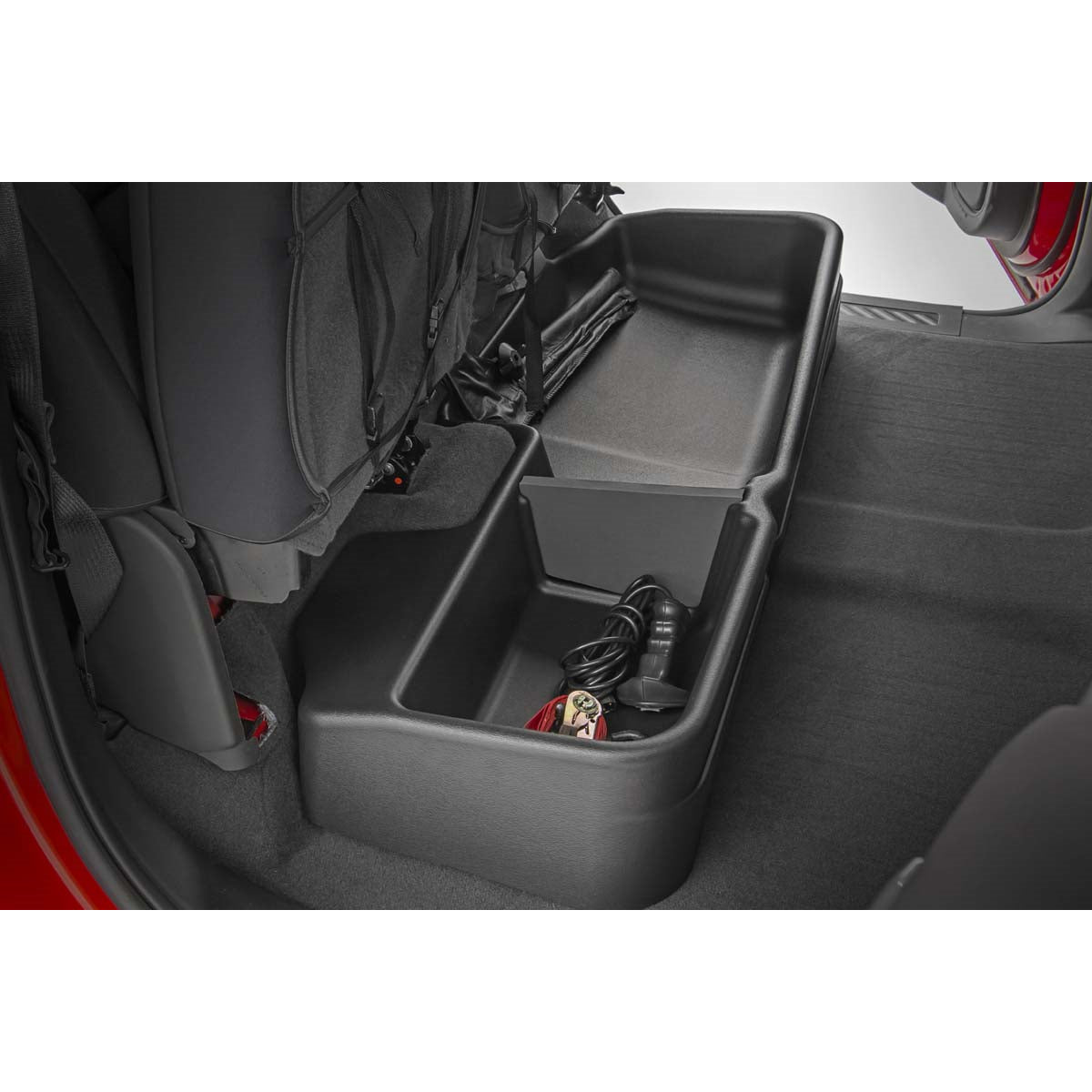 Clean up the contents of your cab with Rough Country's Custom-Fit Under Seat Storage Compartment. These handy under seat truck storage compartments offer an easy way to store your gear with a custom, contoured look that blends in seamlessly with your vehicle's factory design.Keep your tools, gear, and other odds and ends organized and stowed away while conveniently stowed away under the rear seats. Each under seat storage tray is constructed from a durable, high-density thermoplastic material that's built to withstand kicks, nicks, and corrosion.A convenient anti-skid surface helps prevent the contents of your under seat cargo tray from rolling around while driving. Best of all, Rough Country's Custom-Fit Under Seat Storage Compartments are easy to install, so you can upgrade your cargo management quickly and easily!Features:GM Custom-Fit Under Seat Storage Compartment (19-20 1500 / 2020 2500HD/3500HD)Easily organize your storage!Custom-fit design contoured to vehicleDurable high-density thermoplastic constructionIncludes removable dividersAnti-skid surface to prevent contents from shiftingEasy installationFits: 19-20 GM 1500, 2020 2500HD/3500HDNotes:Only fits crew cab modelsIf vehicle is equipped with factory storage box it must be removed prior to installation |