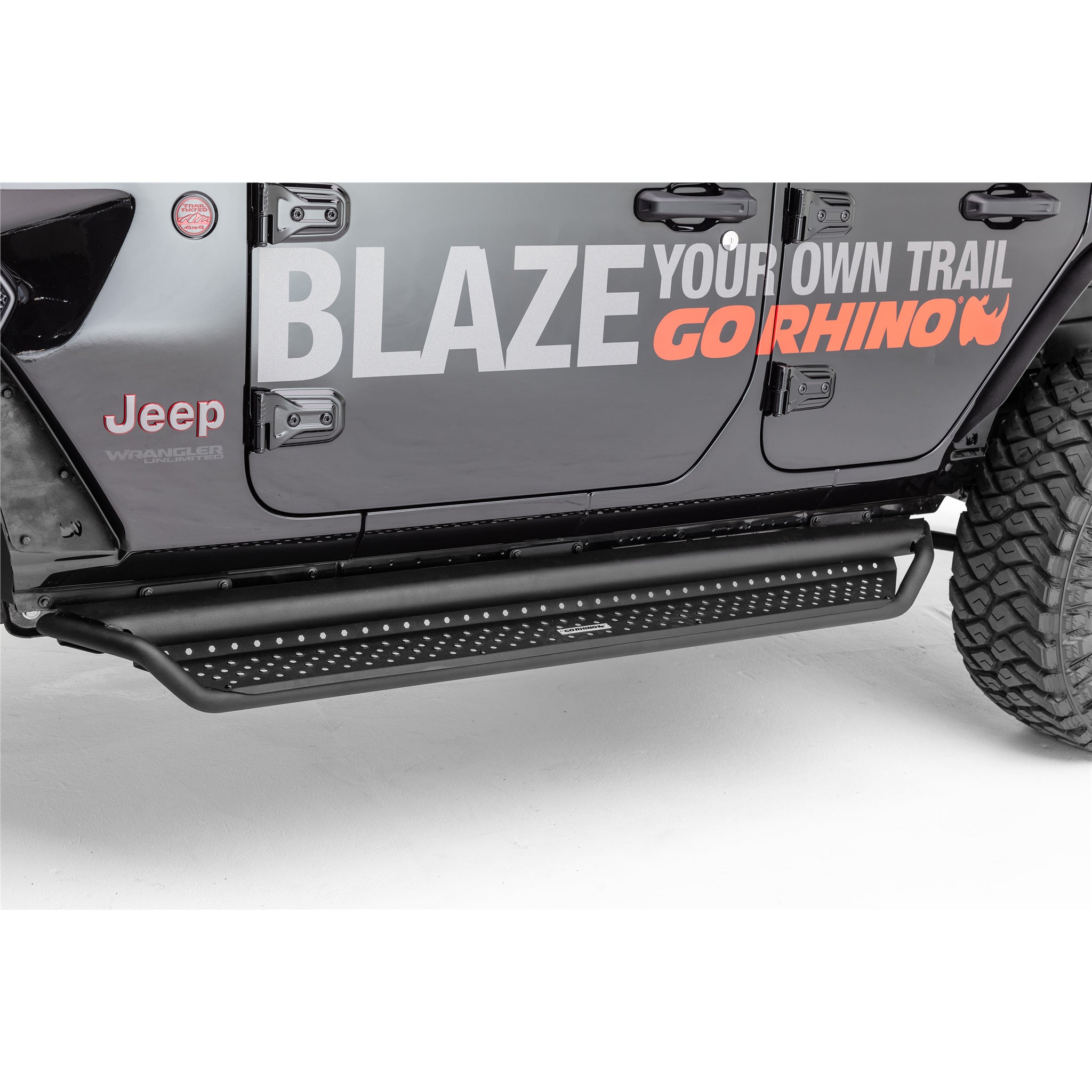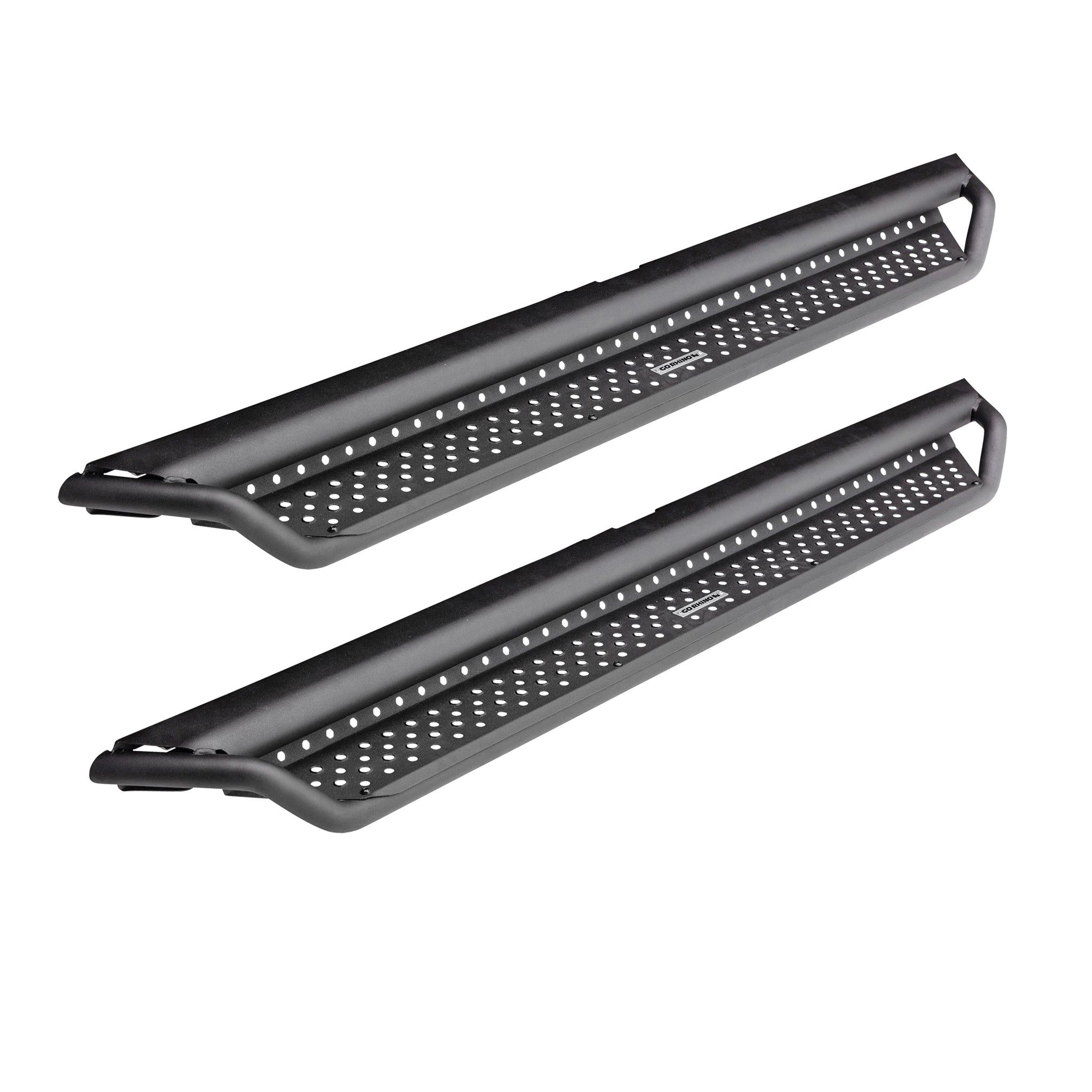 The Go Rhino Dominator D1 is a cab length slider with drop down step designed for both the daily driver and the recreational off-roader. The D1 is constructed of powder coated steel tubing that provides slider protection from trail obstacles and road debris along the rocker panel of vehicle. The wide step area and mesh stepping plate allows for easy access in and out of a lifted vehicle and the raised hex pattern offers a no-slip grip. Installation is easy and the utilization of the OEM step mount locations means no drilling or cutting required. Hardware and brackets are included. The D1 Side Steps come with a Limited Lifetime warranty on materials and construction and a 5 year warranty on the Textured Black Finish.