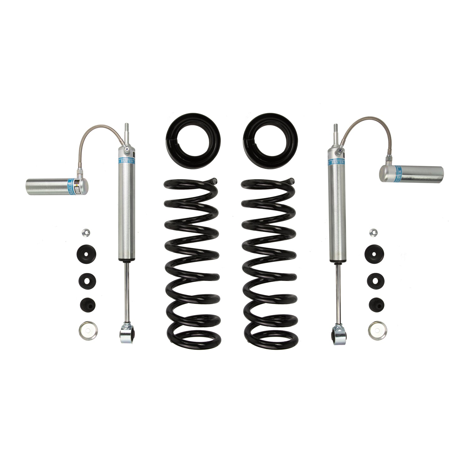 Bilstein B8 5162 suspension kit is a high performance leveling kit which provides more ground clearance, allows for larger tires, and increases wheel travel. The Bilstein B8 5162 suspension kit is for front applications and consists of (2) B8 5160 shock absorbers combined with (2) matched coil springs. This simple yet effective kit will bolt into the factory locations with no modifications. The Bilstein B8 5162 suspension kit provides a smooth and stable ride both on and off-road.