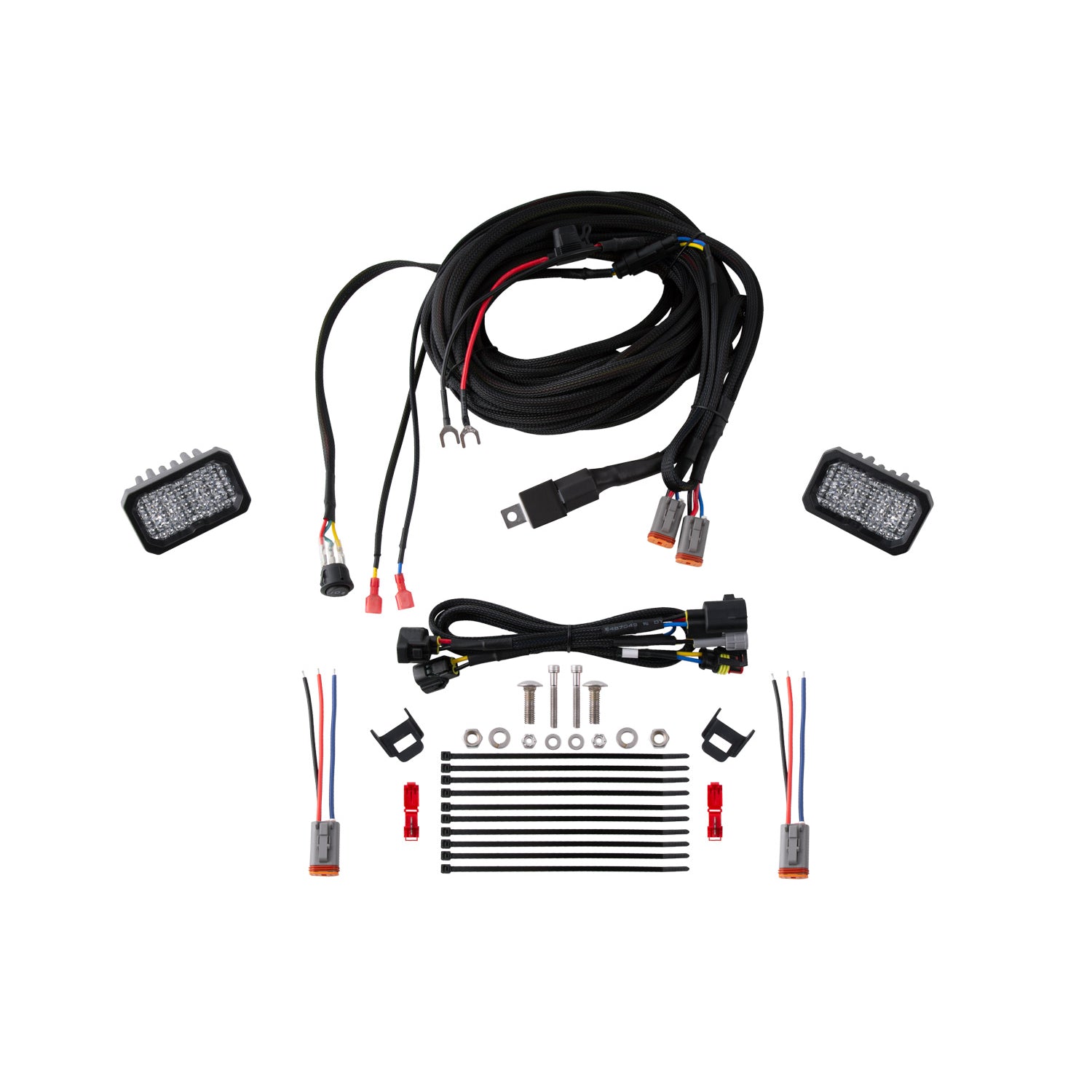 Description_ASC | Included in the box: Two (2) SSC1 or SSC2 Standard LED Pods. One (1) Universal Reverse Light Wiring Harness. One (1) Adapter Harness for 2016-2021 Toyota Tacoma. Two (2) Mounting brackets. Ten (10) Zip Ties. Two (2) T-Taps. Mounting hardware. |