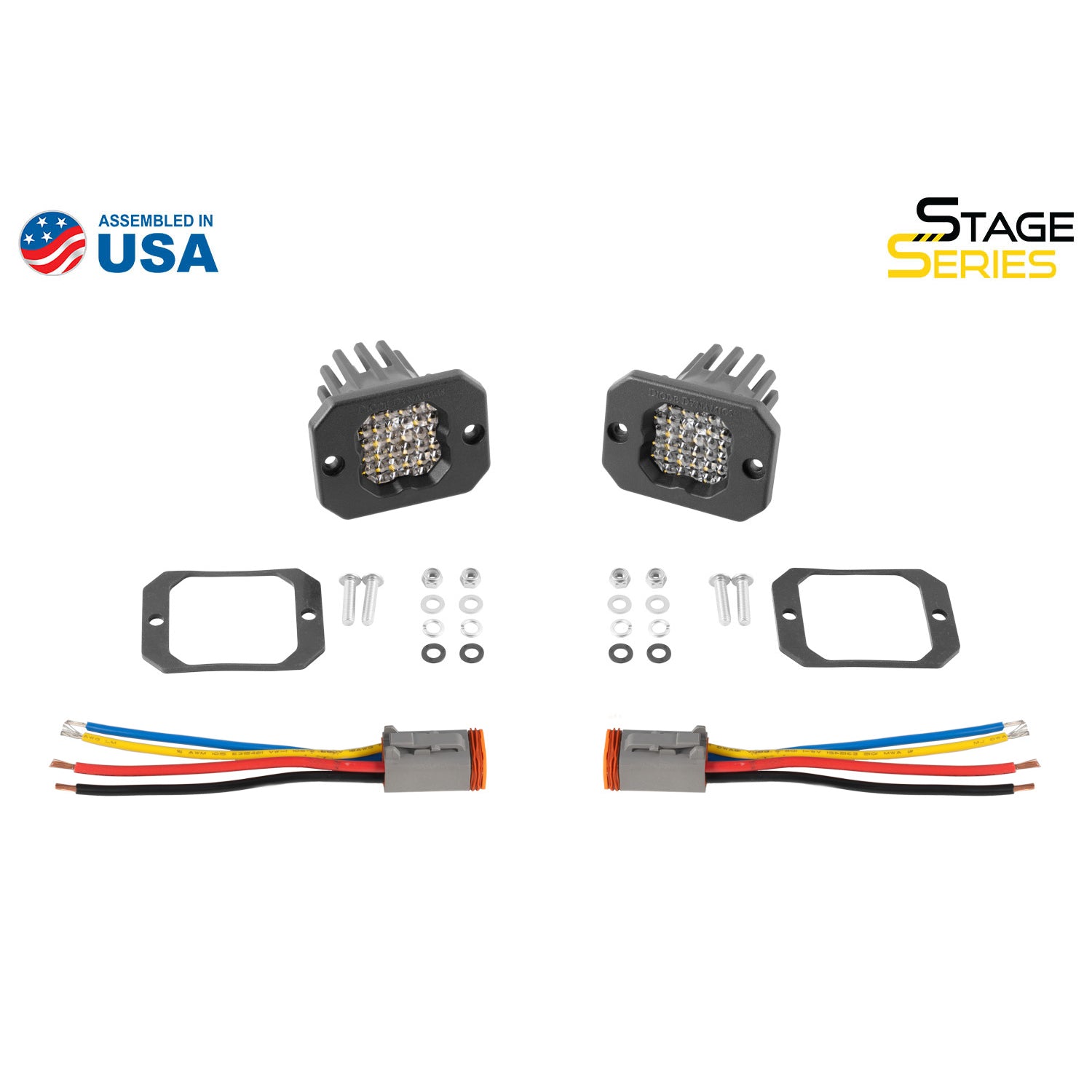 Description_ASC | Included in the box: Two (2) Stage Series C1R LED Pods. Two (2) Deutsch-style wire pigtails. Two (2) Mounting brackets and hardware. |