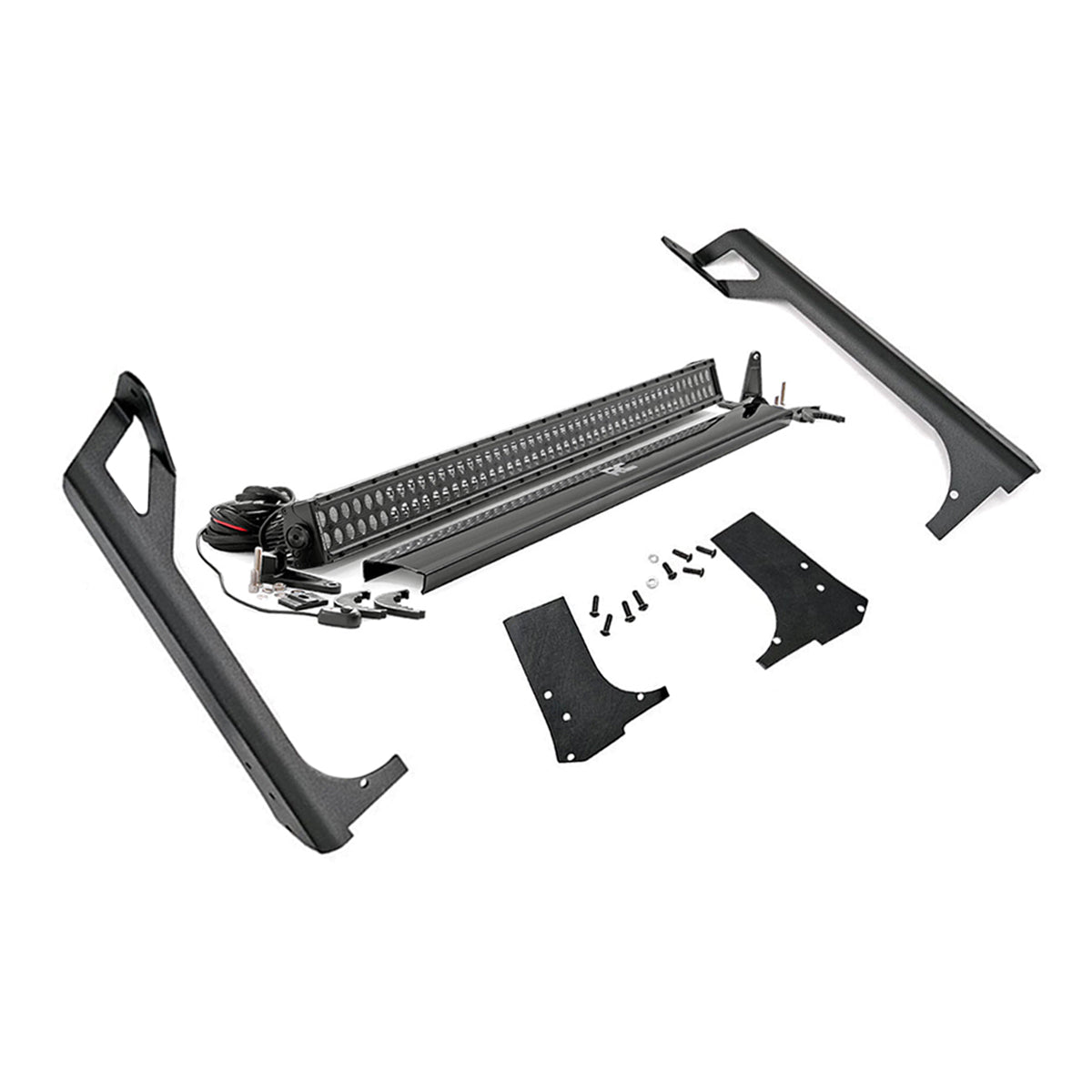With durable steel construction and aggressive good looks, Rough Country's 50-inch LED Upper Windshield Light Bar Bracket is the ultimate solution for adding our premiere lighting system to your Jeep TJ. With its modern, stylistic design and superior strength, this upper windshield mount holds your 50-inch Light Bar between the top of your Wrangler's windshield and roof, spanning the entire width of the roof and giving a killer look. Fits any standard 50-inch Off-Road LED Light.Features:Jeep 50-Inch Straight LED Light Bar Upper Windshield Kit w/ Black Series LED (97-06 TJ)Easy installFeatures a durable black powder coat23040 lumens288 wattsContains 96, 3 watt High Intensity CREE LEDs8 degree spot / 90 degree flood combo patternBlack panel designIP67 Waterproof ratingMoisture Breather technology reduces moisture build-up behind the lensNoise Silencers eliminate hum, whistle, and other wind noises associated with mounted LED Light barsIncludes premium, flat-wound wiring harness with on/off switchIncludes snap-on coverDurable die cast aluminum housingLength: 50.31-inches, Depth: 3.45-inches, Height: 3-inchesBolt Diameter: 8mm3 year warrantyFits: 97-06 Jeep Wrangler TJNotes:For off-road use only
