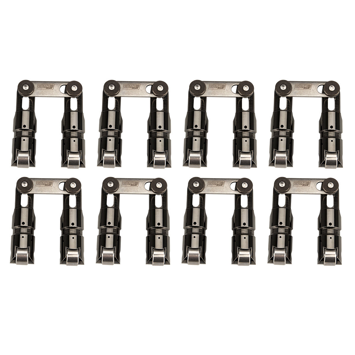 Race XD Solid Roller Lifters are the strongest, most durable and versatile lifters available from the leader in valve train technology, COMP Cams. Designed to be the most versatile solid roller lifters available, COMP Cams Race XD lifters feature a lightweight modular design with five interchangeable pushrod seats. Available in medium or large offsets with left or right placement, the COMP Cams Race XD series lifters are configurable to clear even the most extreme intake angles. REM finished bodies create an extra smooth surface for reduced lifter body and lifter bore wear. An available DLC-coated lifter body coating further minimizes friction for the ultimate in durability. For excellent strength in extreme operating conditions, COMP Cams incorporates a proprietary bronze alloy roller bushing, while a captured link bar joins individual lifters together. In an effort to eliminate the culprit for most roller lifter failures, axle and wheel oil starvation, COMP Cams developed a new oiling system that ensures consistent roller wheel and axle lubrication. COMP Cams Race XD Solid Roller Lifter sets are available in 0.842" and 0.904" diameter bodies for both Chevrolet Small Block and Big Block engines. 0.080" and 0.160" offset seats are available for 0.842" diameter lifters while 0.090" and 0.180" offset seats fit the 0.904" diameter lifters. All pushrod seats are designed to accommodate both 5/16"and 3/8" ball pushrods. |
