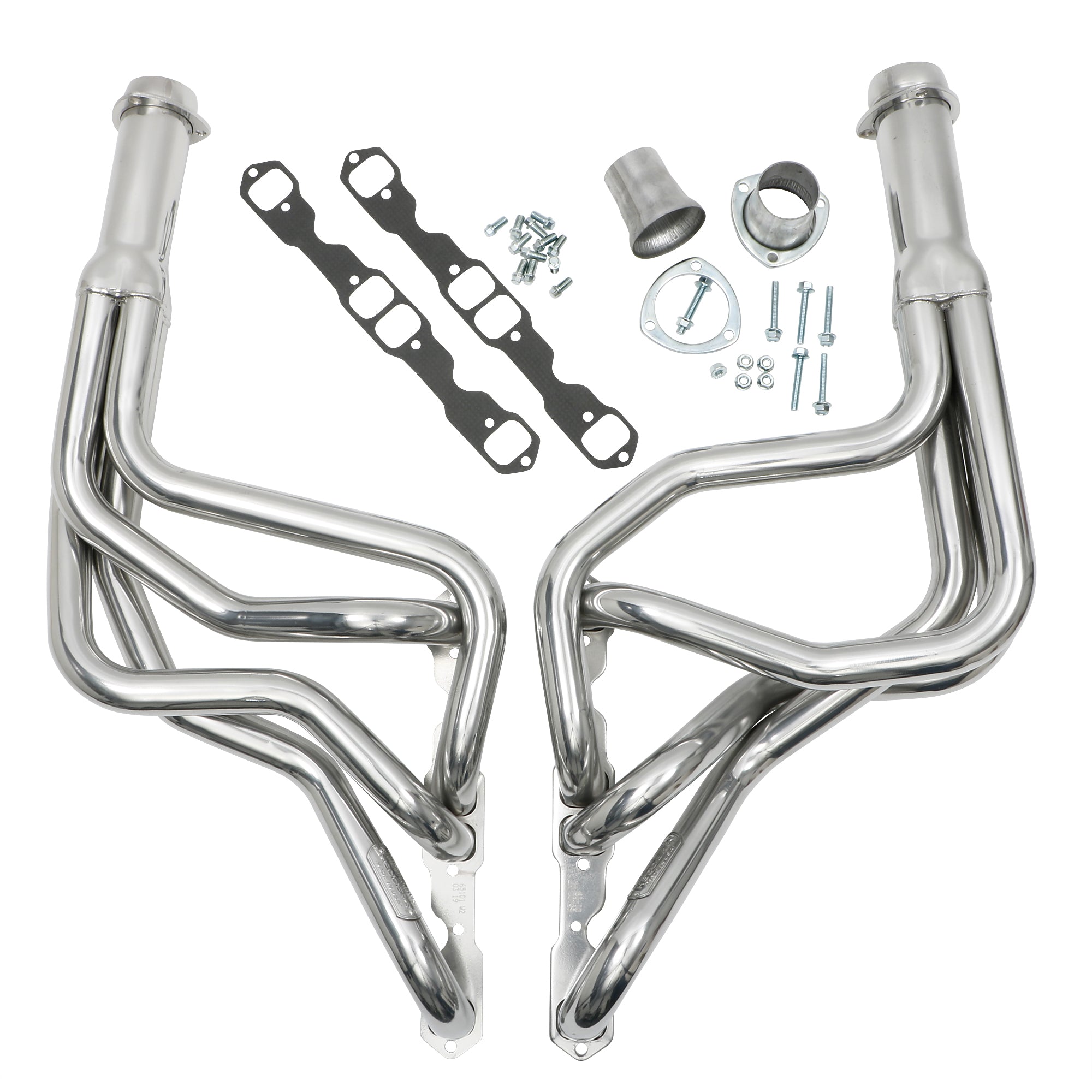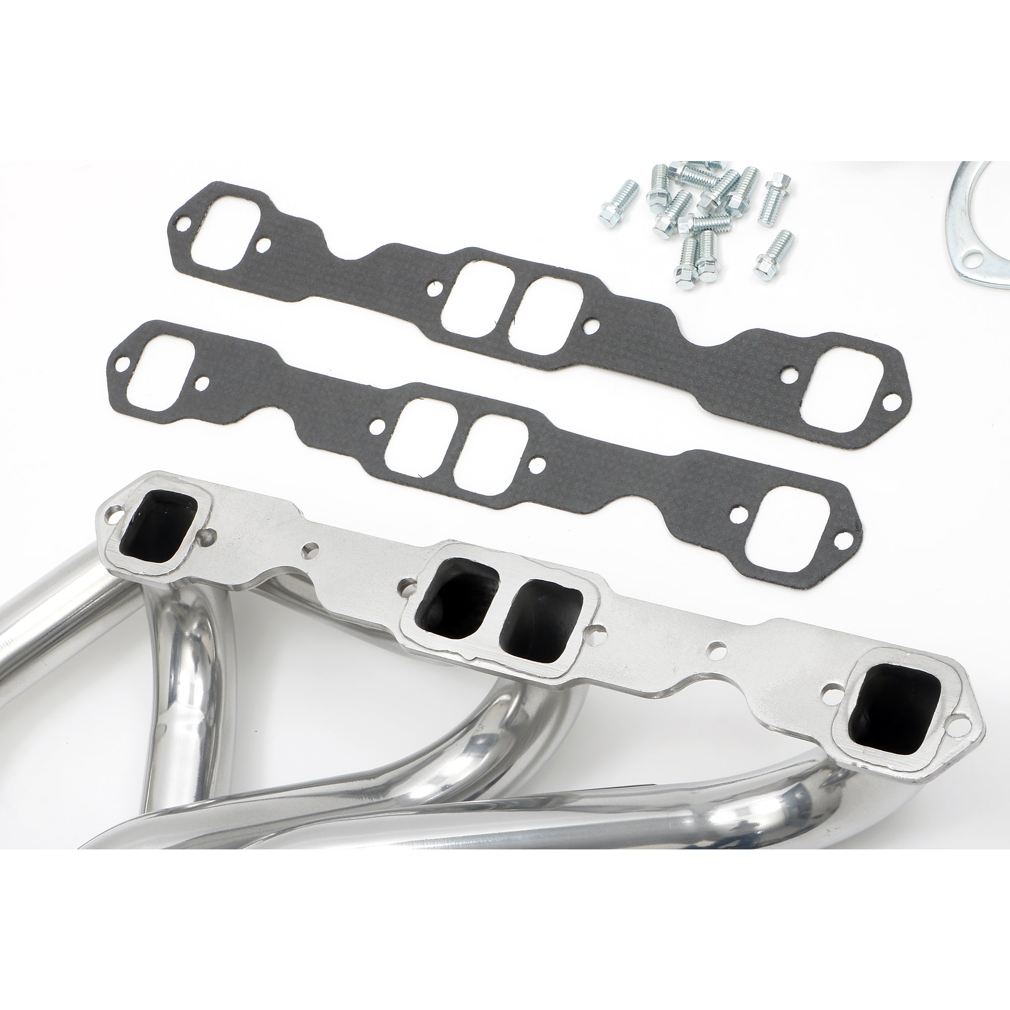 Contents | Header(s), new bolts, gasket(s) to head, reducer(s) and hardware, instructions |