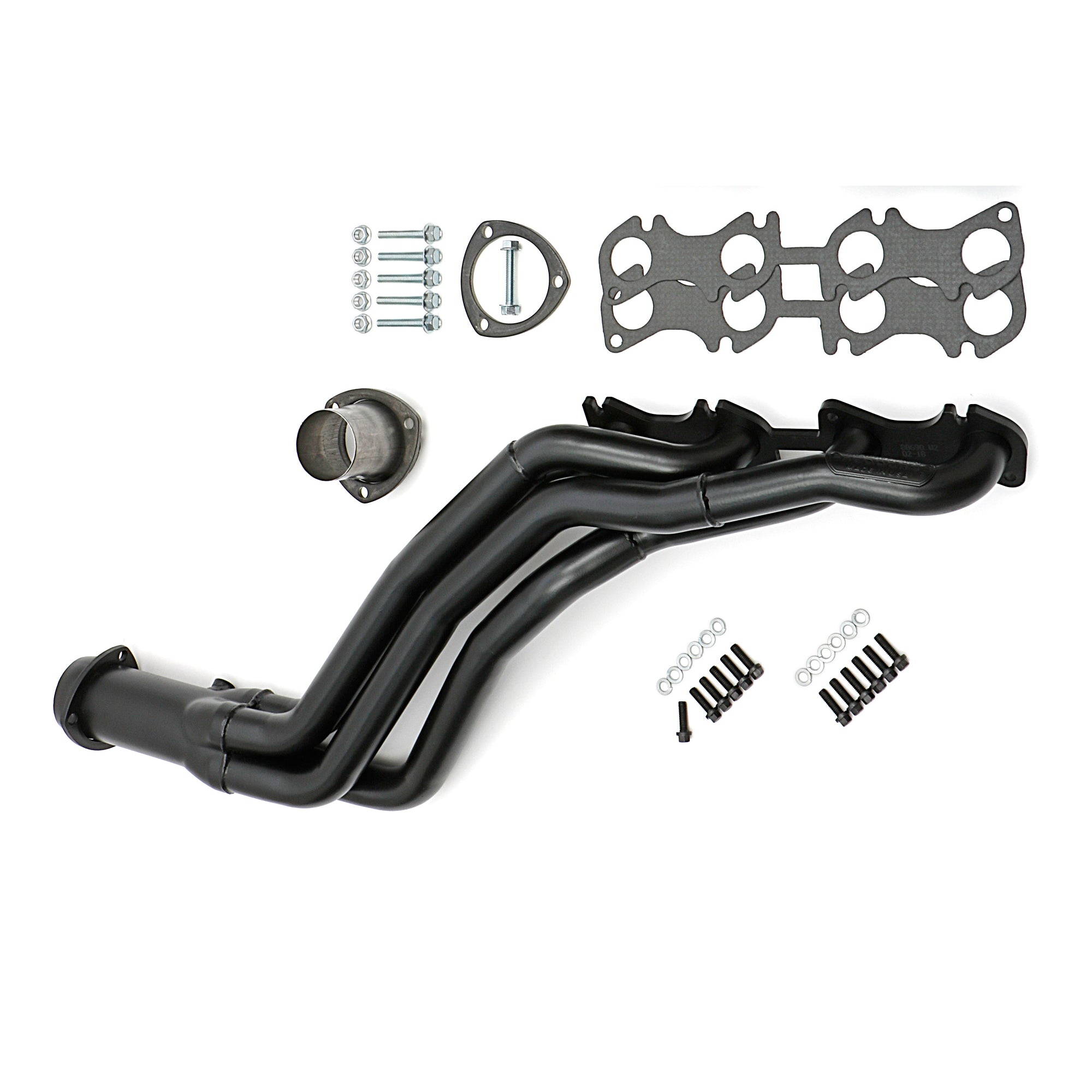 Contents | Header(s), new bolts, gasket(s) to head, reducer(s) and hardware, instructions |