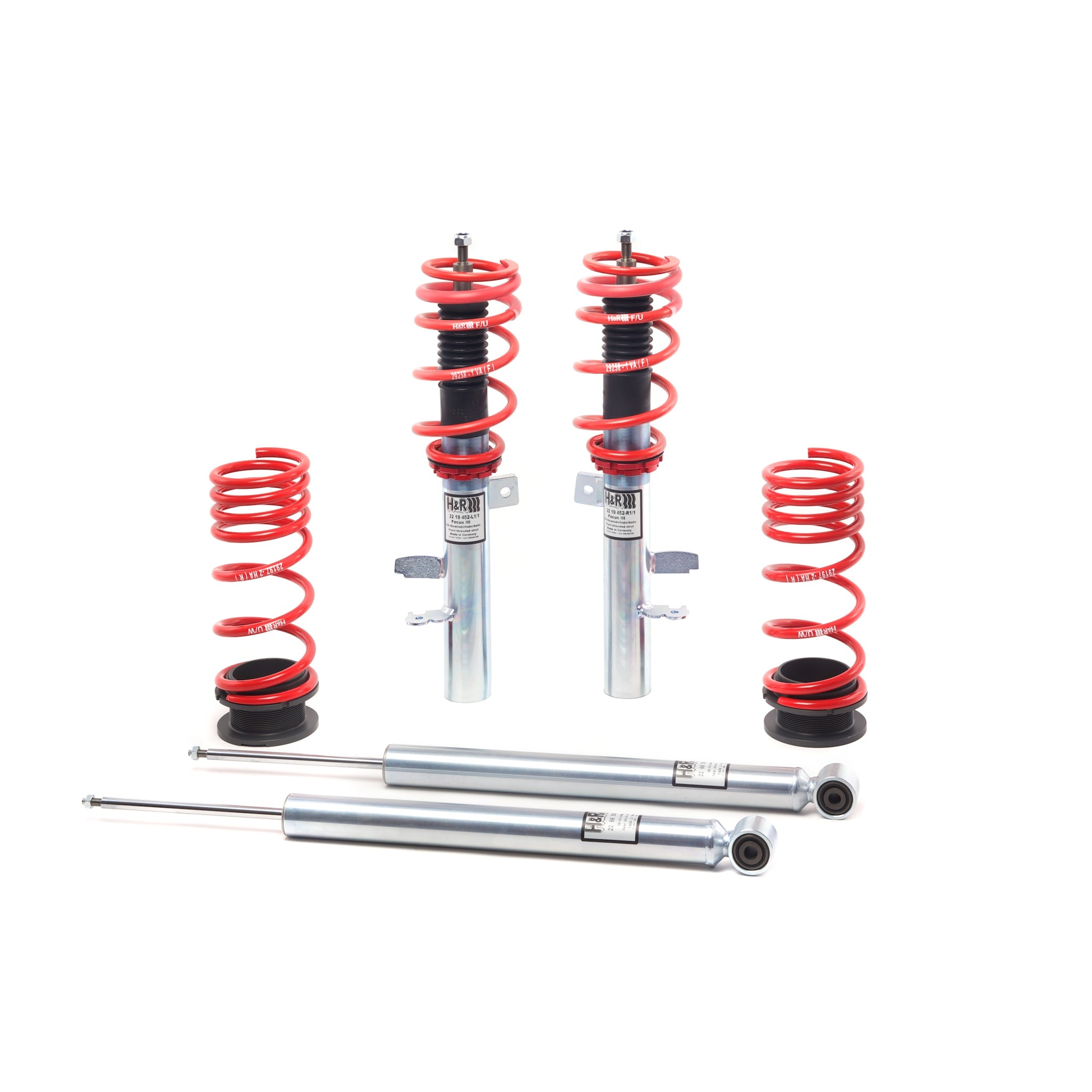 H&R'street Performance Coil Overs are the perfect suspension'solution for discerning drivers-from daily drivers'to serious tuners-who can appreciate awesome handling and superb ride comfort. Each coil over shock is custom valved to work in conjunction with a precision-engineered progressive rate spring, creating a finely tuned suspension'system. The fully threaded shock body allows for adjustable vehicle height. This feature helps balance vehicle weight, resulting in a lower center of gravity and improved performance and control.