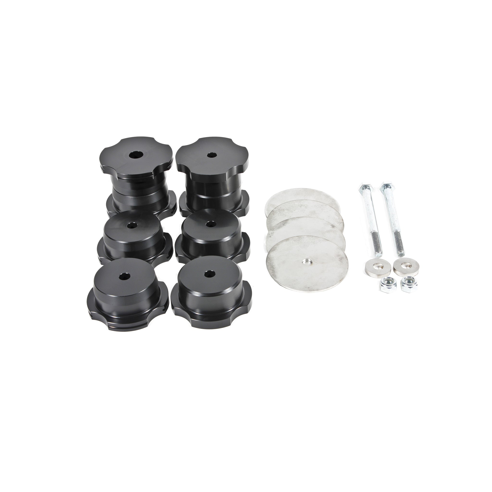 Eliminate rear cradle movement in your 2016-newer Chevrolet Camaro with a Delrin Rear Cradle Bushing Kit from BMR Suspension. The OE bushings are designed with air pockets and are made from soft rubber. These voids , coupled with soft material produce excessive differential movement during normal and aggressive driving. These bushings are CNC-machined from Delrin, which is known for its high stiffness, low friction and excellent dimensional stability. This material eliminates deflection with only moderate increases in NVH. Each bushing is machined to exact tolerances, which are designed by BMR. This allows for a perfect fit and increased performance for any driving style. The BMR Delrin Rear Cradle Bushing Kit (BK062) greatly increases the rigidity and stability of the chassis to provide maximum control and consistency necessary for any form of competition or high performance street driving. Designed for max effort street performance, drag race, and handling applications, BMR Suspension BK062 Delrin Cradle Bushings are the perfect wheelhop solution for any Sixth Gen Camaro where NVH is not a concern. BMR s Delrin cradle bushings replace the entire OE rubber bushing, eliminating differential movement by replacing the soft rubber OE bushings with solid two-piece Delrin bushings. These bushings remove all movement between the rear cradle and chassis, eliminating the deflection that occurs during acceleration, cornering, and braking. This reduces wheelhop and increases handling stability, while giving you a much-improved overall feel in any performance driving situation. BMR Suspension's BK062 Differential Busing Kit is available in black. Installation time is about 3-4 hours and may vary depending on stock bushing removal technique. Proudly made in the U.S.A.!