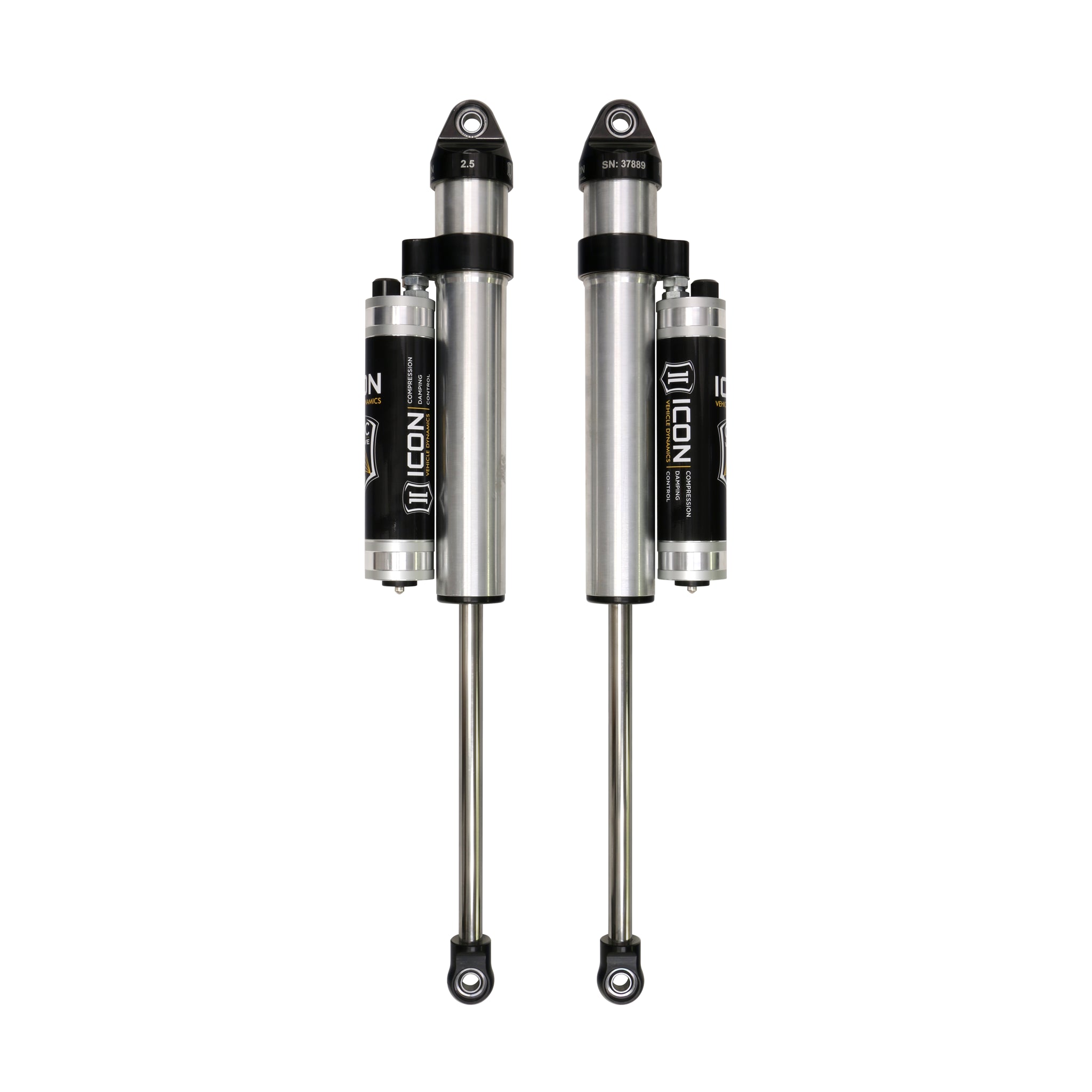 ICON Vehicle Specific (V.S.) 2.5 Series shocks are designed and built to give your vehicle outstanding performance off-road and a smooth ride on the street. These shocks are configured specifically for each application in both length and damping tune. Like all ICON'S Shock Absorbers, V.S. 2.5 Series shocks are 100% rebuildable and 100% revalveable. For piggyback and specific remote reservoir applications, ICON'S unique use of a 6061 billet aluminum manifold a few inches below the top cap of the shock creates an internal Bump Zone that when used creates an additional 20% of damping force. This additional force helps prevent harsh bottom outs and controls the suspension when compressing at high velocity. The ICON CDC Valve is an externally adjustable valve that restricts oil flow into the reservoir which creates 10 levels of compression damping force ranges. If you are looking for a more user defined tune, consider looking into the Omega Series bypass shocks.