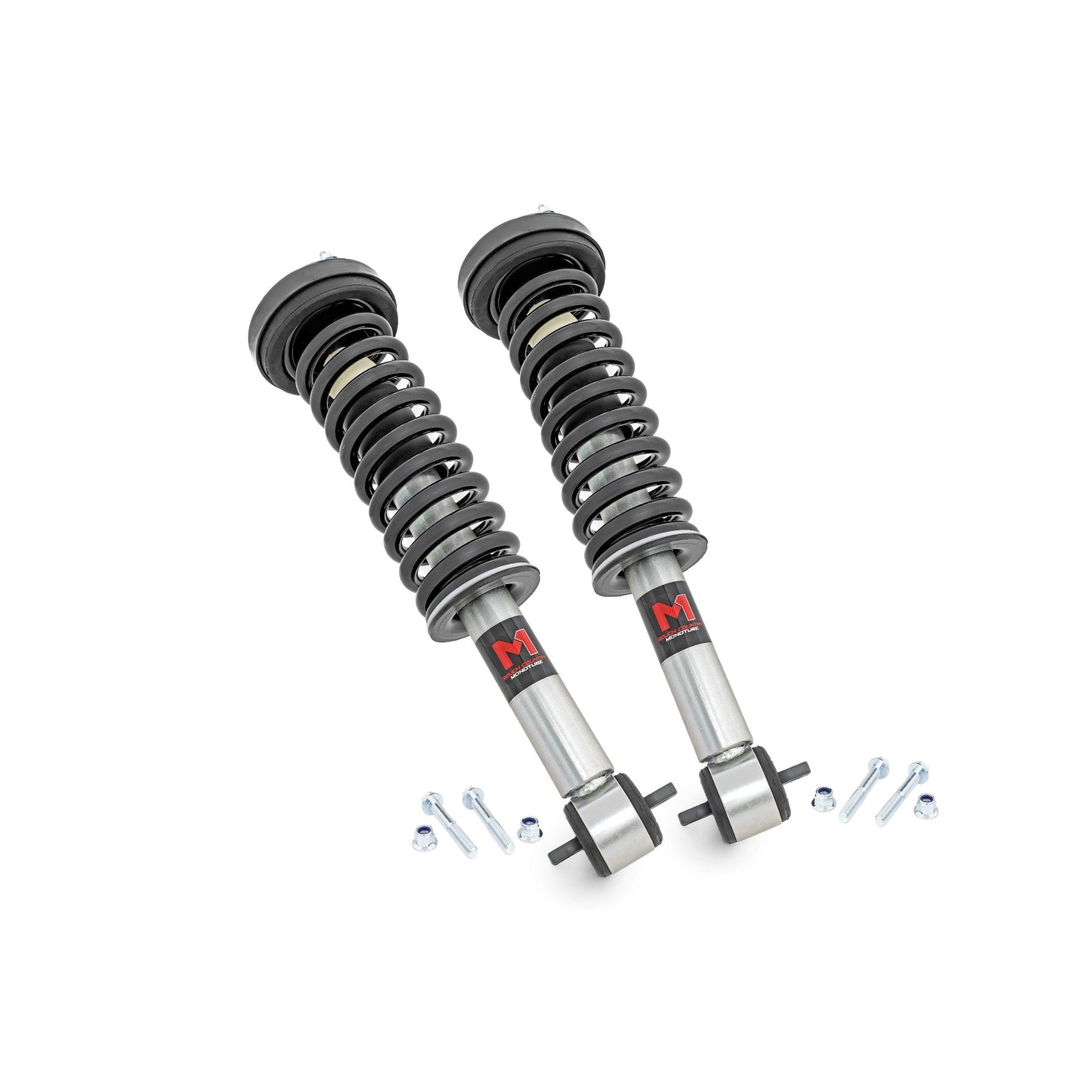 Description_MKT | Improved Stance, Balance, and Handling. If you want to improve your vehicle's on-road performance and off-road capabilities, Rough Country's M1 Loaded Strut Kits are the way to go.Our M1 Loaded Struts help stabilize your vehicle's movements, enhancing control when you turn, brake, accelerate or ride over uneven road surfaces. As an adjustable ride height strut, these M1's keep your suspension from overextending, providing a more consistent ride.Made for rugged off-road performance, our M1 monotube struts have a 46mm digressive piston for a more stable ride, preserving the smooth ride quality you need.Quality Construction. Rough Country's M1 Loaded Struts have been engineered to give you the most reliable performance, increased driving comfort, and all-around performance for your vehicle.Made from 2 inch seamless extruded tubing and feature durable vulcanized natural rubber bushings. They're also zinc plated for resistance against the elements. Plus, they're adjustable in height.Utilizing multiple grooves in the strut body the spring perch can be raised or lowered to achieve dial in your ride height. So whether you're looking to add a little extra clearance for off-roading or just want your ride to sit a little higher, our M1 Monotube Loaded Struts are the perfect solution.Installation and Warranty. This bolt-on installation requires just basic tools and about 2-3 hours to complete. Our Strut Kit is backed with a limited lifetime replacement warranty towards manufacturer defects.As such, the product is protected from structural and workmanship damage after the date of purchase. With our industry-leading warranty, give yourself peace of mind when using Rough Country's products!Features:M1 Loaded Strut Pair 3 Inch Ford F-150 4WD (14-23)2-inch seamless extruded tube.46mm digressive piston.Self-adjusting, deflective-disc independent rebound and compression.18mm centerless-ground, case-hardened, chromed, and super-polished rod.46mm monotube design ensures consistent, fade-free performance in all conditions.Digressive valving instantly reacts to changing surface conditions.Zinc plated for resistance against harsh elements.Available in various lift heights for multiple applications.Durable vulcanized natural rubber bushings.3-year Manufacturer's Warranty.Notes:ONLY fits models with 3-inches of lift.Cannot be installed in conjunction with a strut spacer. |