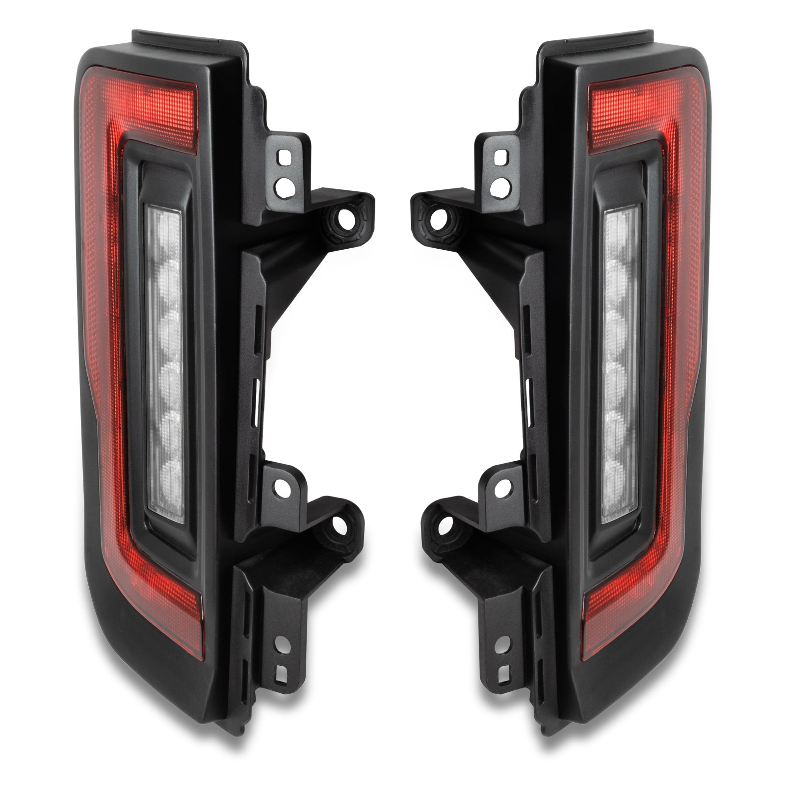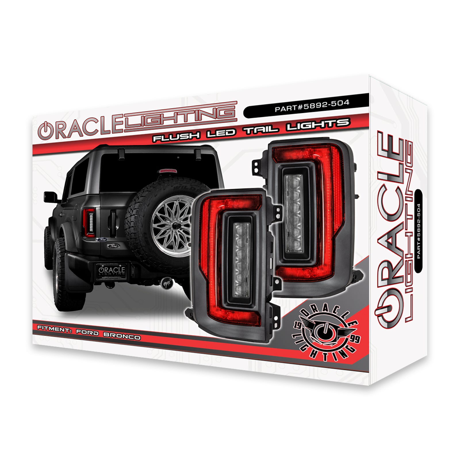 ORACLE Lighting is excited to reveal our new flush mount LED tail light design for the new Ford Bronco. Protruding out significantly less than the factory tail lights, this low-profile design helps avoid potential damage while trail riding. These Ford Bronco tail lights feature an attractive design and functional LED lighting elements including high-powered reverse lights and unique signature perimeter lighting. No more problems backing up at night because these LED reverse lights are basically a pair of LED light bars mounted into the tail light which will provide over 8,000 Lumens of rear-facing illumination. This innovative design wraps tightly around the truck. Because of the nearly flush wrap-around design, the lighting can be visible from any rear angle, making it a unique solution for the Bronco. These flush tail lights provide improved aesthetics and functional LED lighting features including high-powered reverse lights and signature perimeter lighting. As you can see in the animation below, these lights wrap tightly to the vehicle body providing a Flush mount design which not only looks great but is functional as well. Damaging factory tail lights on trails is not an uncommon issue for owners who often off-road their Broncos. The factory design protrudes out several inches past the body which creates unnecessary exposure to trees, boulders, and other obstacles on tight trails. The frame of the ORACLE Lighting Flush Mount LED Tail Light for the Ford Bronco is tight to the body panel reducing exposure and vulnerability. Even if you don't off-road your Bronco often, these lights provide plenty of innovative features and unique styling -- which make them an awesome mod for any Bronco owner. Gain sleek styling that compliments the original body lines and tons of innovative features. With the superior quality and durability that ORACLE Lighting is known for, these tail lights are the perfect upgrade for your Bronco!