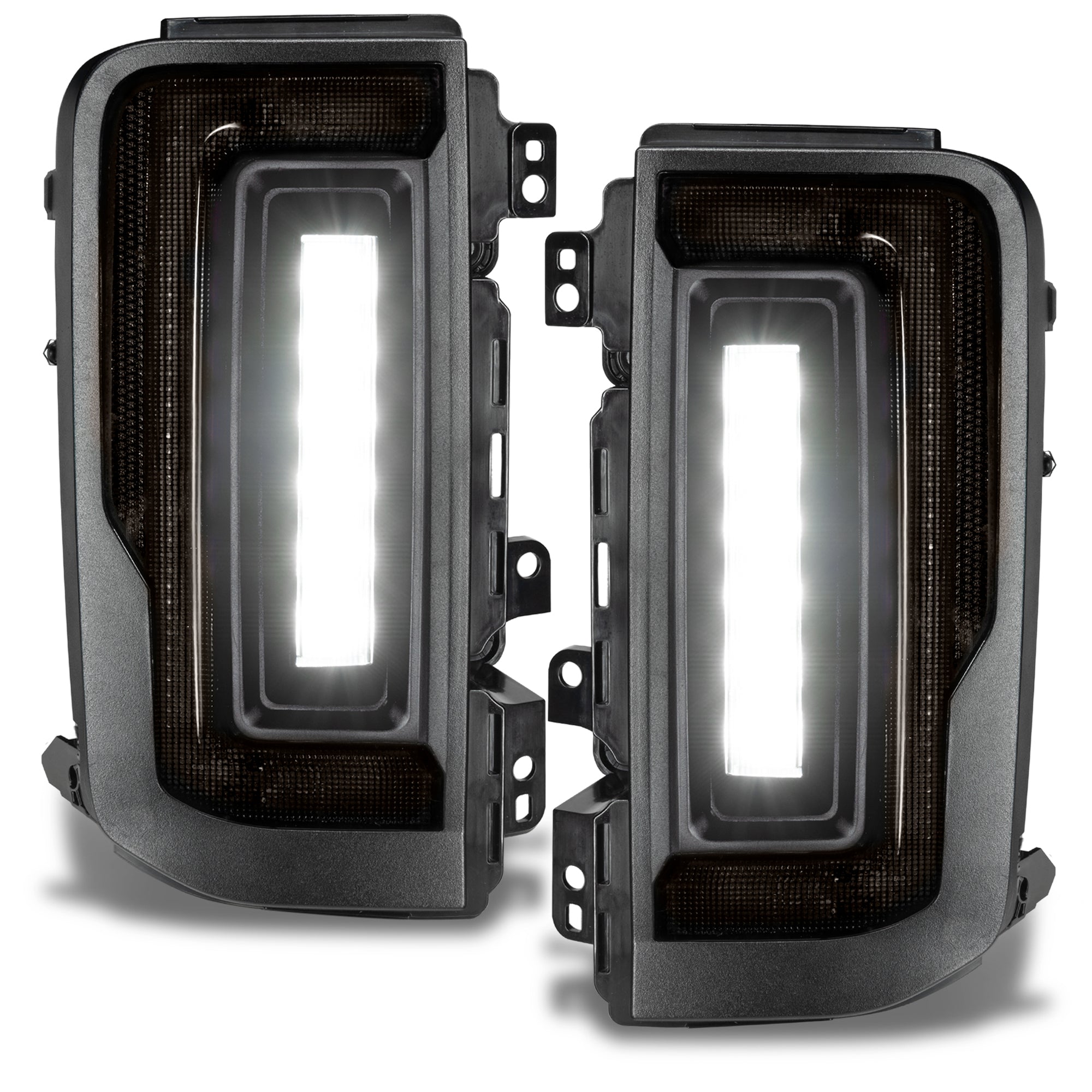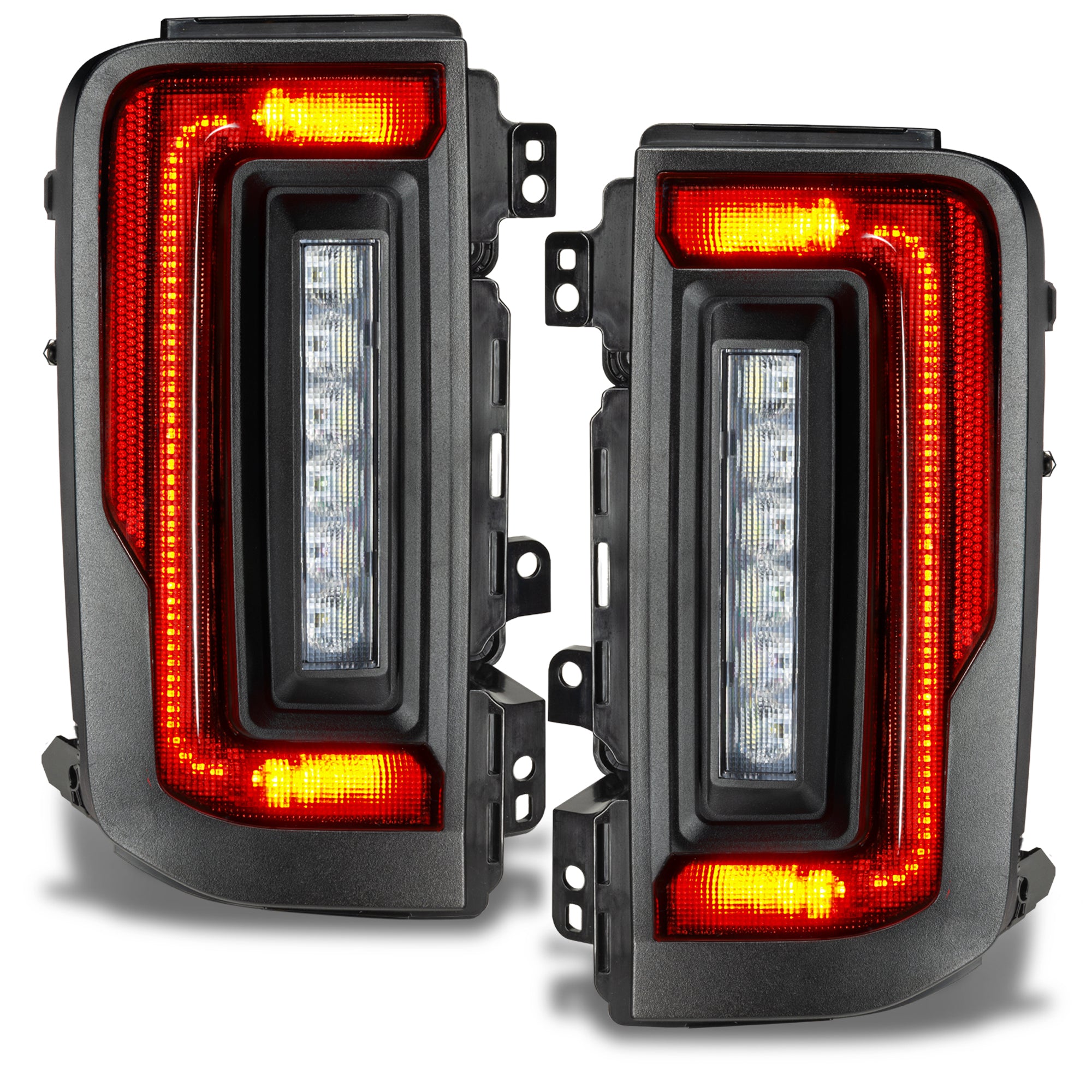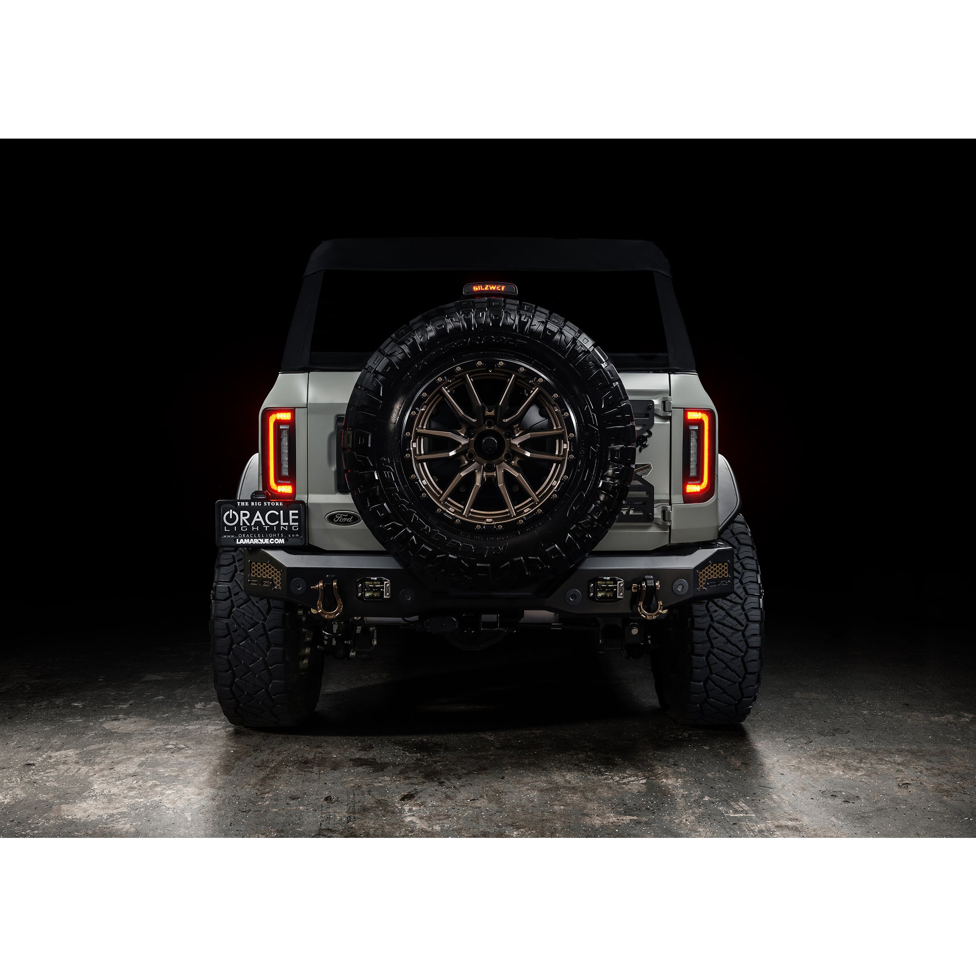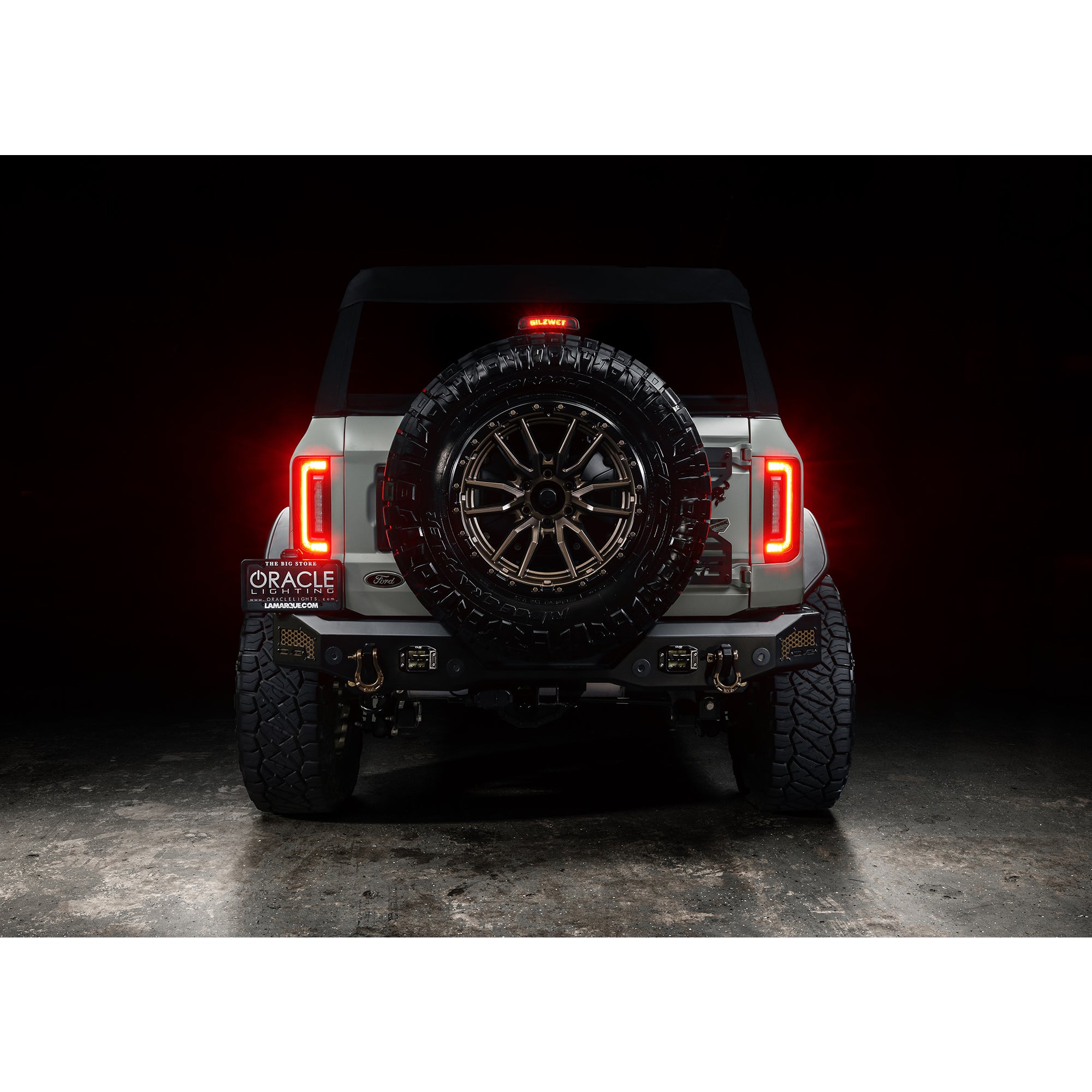 ORACLE Lighting is excited to reveal our new flush mount LED tail light design for the new Ford Bronco. Protruding out significantly less than the factory tail lights, this low-profile design helps avoid potential damage while trail riding. These Ford Bronco tail lights feature an attractive design and functional LED lighting elements including high-powered reverse lights and unique signature perimeter lighting No more problems backing up at night because these LED reverse lights are basically a pair of LED light bars mounted into the tail light which will provide over 8,000 Lumens of rear-facing illumination. This innovative design wraps tightly around the truck. Because of the nearly flush wrap-around design, the lighting can be visible from any rear angle, making it a unique solution for the Bronco. These flush tail lights provide improved aesthetics and functional LED lighting features including high-powered reverse lights and signature perimeter lighting. As you can see in the animation below, these lights wrap tightly to the vehicle body providing a Flush mount design which not only looks great but is functional as well. Damaging factory tail lights on trails is not an uncommon issue for owners who often off-road their Broncos. The factory design protrudes out several inches past the body which creates unnecessary exposure to trees, boulders, and other obstacles on tight trails. The frame of the ORACLE Lighting Flush Mount LED Tail Light for the Ford Bronco is tight to the body panel reducing exposure and vulnerability. Even if you don't off-road your Bronco often, these lights provide plenty of innovative features and unique styling -which make them an awesome mod for any Bronco owner. Gain sleek styling that compliments the original body lines and tons of innovative features. With the superior quality and durability that ORACLE Lighting is known for, these tail lights are the perfect upgrade for your Bronco!