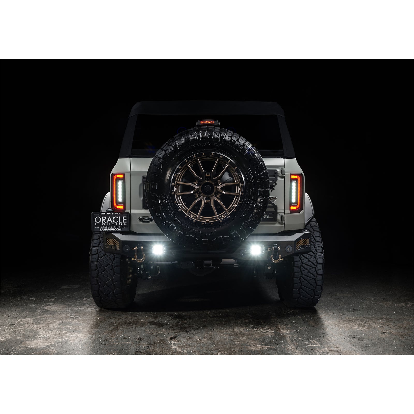 ORACLE Lighting is excited to reveal our new flush mount LED tail light design for the new Ford Bronco. Protruding out significantly less than the factory tail lights, this low-profile design helps avoid potential damage while trail riding. These Ford Bronco tail lights feature an attractive design and functional LED lighting elements including high-powered reverse lights and unique signature perimeter lighting No more problems backing up at night because these LED reverse lights are basically a pair of LED light bars mounted into the tail light which will provide over 8,000 Lumens of rear-facing illumination. This innovative design wraps tightly around the truck. Because of the nearly flush wrap-around design, the lighting can be visible from any rear angle, making it a unique solution for the Bronco. These flush tail lights provide improved aesthetics and functional LED lighting features including high-powered reverse lights and signature perimeter lighting. As you can see in the animation below, these lights wrap tightly to the vehicle body providing a Flush mount design which not only looks great but is functional as well. Damaging factory tail lights on trails is not an uncommon issue for owners who often off-road their Broncos. The factory design protrudes out several inches past the body which creates unnecessary exposure to trees, boulders, and other obstacles on tight trails. The frame of the ORACLE Lighting Flush Mount LED Tail Light for the Ford Bronco is tight to the body panel reducing exposure and vulnerability. Even if you don't off-road your Bronco often, these lights provide plenty of innovative features and unique styling -which make them an awesome mod for any Bronco owner. Gain sleek styling that compliments the original body lines and tons of innovative features. With the superior quality and durability that ORACLE Lighting is known for, these tail lights are the perfect upgrade for your Bronco! |