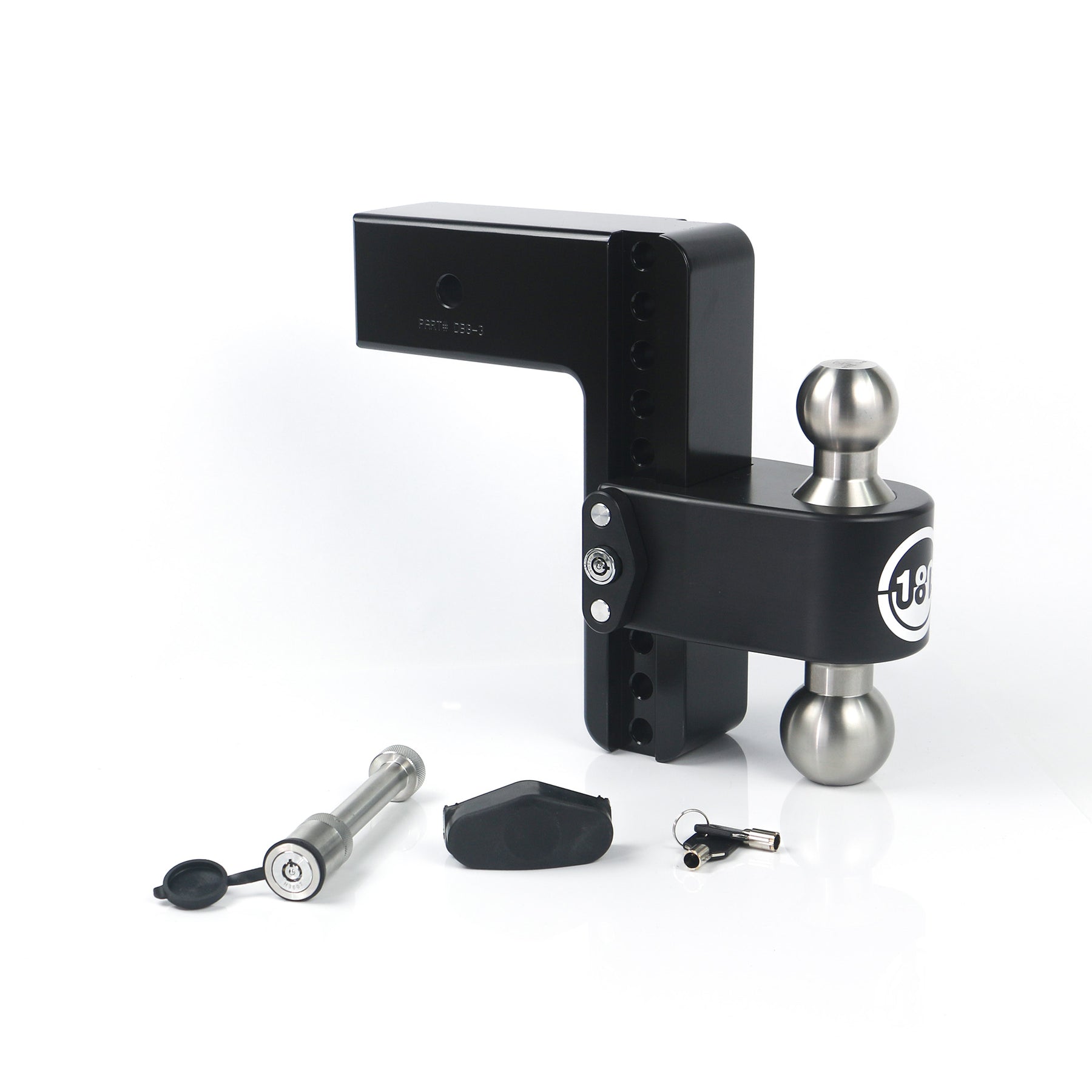 Description_FAB 8" ADJUSTABLE BALL MOUNT: 8" drop hitch & 9" rise hitch, adjusts in 1" increments so you get the perfect fit for any trailer height - Secured using Anti-Theft Locking Design to protect your drop hitch