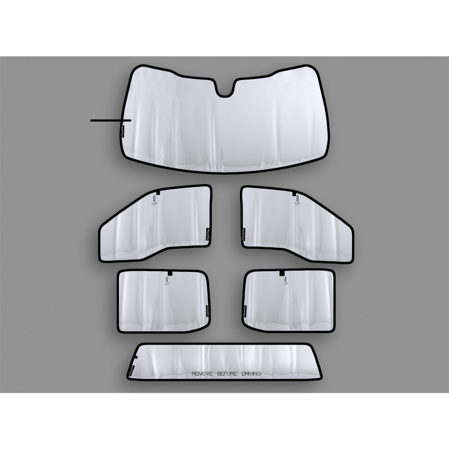 Description_MKT | WeatherTech SunShade Full Vehicle Kits help keep your entire vehicle's interior temperatures down while protecting it from the sun's damaging effects. SunShade Full Vehicle Kits include 4 or 6 pieces depending on the vehicle model. SunShade kits are custom-fit, and when properly installed, will remain snug in each window opening on the vehicle. Each SunShade features a foam core, which makes for easy handling and a sturdy fit. After use, simply pull on the your shade's pull tabs and roll all pieces together using the easy roll up and store Hook & Loop strap. Full Vehicle Kits only available in select vehicles |