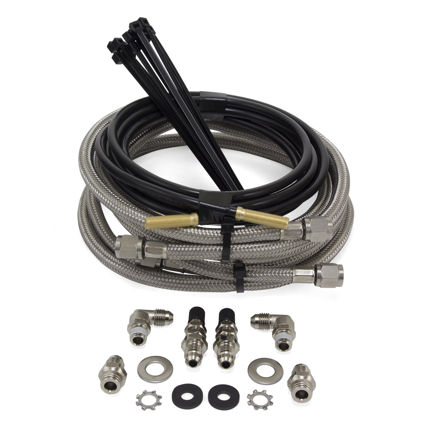 Description_MKT | Air Lift Company now offers a kit that allows elite users to upgrade the components of their existing LoadLifter 5000 series air spring kits to those of the new LoadLifter 5000 Ultimate Plus kits. With this upgrade opportunity, users can now have the longest-lasting load support system that money can buy, without needing to purchase an entirely new system. For those with existing Air Lift LoadLifter 5000 series kits on their vehicles, the power of air is undeniable -- up to 5,000 lbs. of load-leveling capacity, eliminating squat, poor headlight aim, trailer sway, and body-roll, creating a comfortable ride and stress-free towing experience. Now, Air Lift offers elite towers and haulers the opportunity to upgrade the components of their existing LoadLifter 5000 series systems to those of the LoadLifter 5000 Ultimate Plus systems. With this upgrade kit, Air Lift users can add military-grade AN fittings and 10 feet of braided stainless steel air line to their system for added protection from heat and road debris, as well as leak-free connections. All of the existing benefits of the LoadLifter 5000 series system are preserved, with the addition of a new level of the safety and comfort that Air Lift is known to provide. As the leader in air suspension products for more than 65 years, Air Lift is committed to delivering quality load support parts that last. To ensure the highest quality, longevity, and customer satisfaction, the key suspension components, including the air springs and all hardware, have all been torture-tested on our hydraulic test rig. With a limited-lifetime warranty -- not to mention the Air Lift reputation for great customer service and technical support, should you run into any snags in the installation process -- you can purchase this kit with peace of mind. Installing the kit is a simple process, requiring only common hand tools and no frame drilling. |
