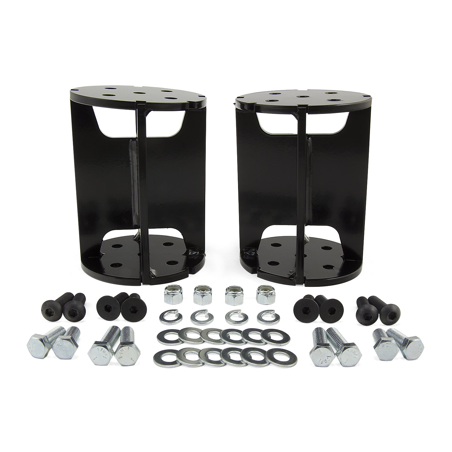 For drivers of lifted trucks, it's common to find that the towing and hauling capabilities of the stock suspension are compromised. With the new Universal Air Spring Spacers from Air Lift, drivers are now able to add a load support solution and restore the full potential of the vehicle. Available in 4 in. straight, 6 in. straight, 4 in. angled, and 6 in. angled varieties, the Universal Air Spring Spacers are designed to accommodate most lift kits, up to six inches. With a unique spinal design, the spacers are easy to attach to bellows-style air spring systems, including Air Lift's best-selling LoadLifter 5000 series and LoadLifter 7500 XL, using the provided hardware. With air springs equipped, drivers of lifted vehicles will find that the towing and hauling capabilities of their vehicles are restored. Adding air springs will eliminate many common issues faced when towing and hauling heavy loads, including squat, poor headlight aim, trailer sway, and bottoming out. Drivers and passengers alike will notice that handling, ride quality, and braking power are all greatly improved. Each Universal Air Spring Spacer kit comes with a clear, easy-to-follow, fully illustrated instruction manual to make the installation process easy clear and simple. As the leader in air suspension products for more than 70 years, Air Lift is committed to delivering quality load support parts that last. The key suspension components have all been torture-tested to ensure the highest quality, longevity, and customer satisfaction. With a limited-lifetime warranty, you can purchase this kit with peace of mind. Take your existing air suspension solution to the next level of safety and comfort with Universal Air Spring Spacers today!