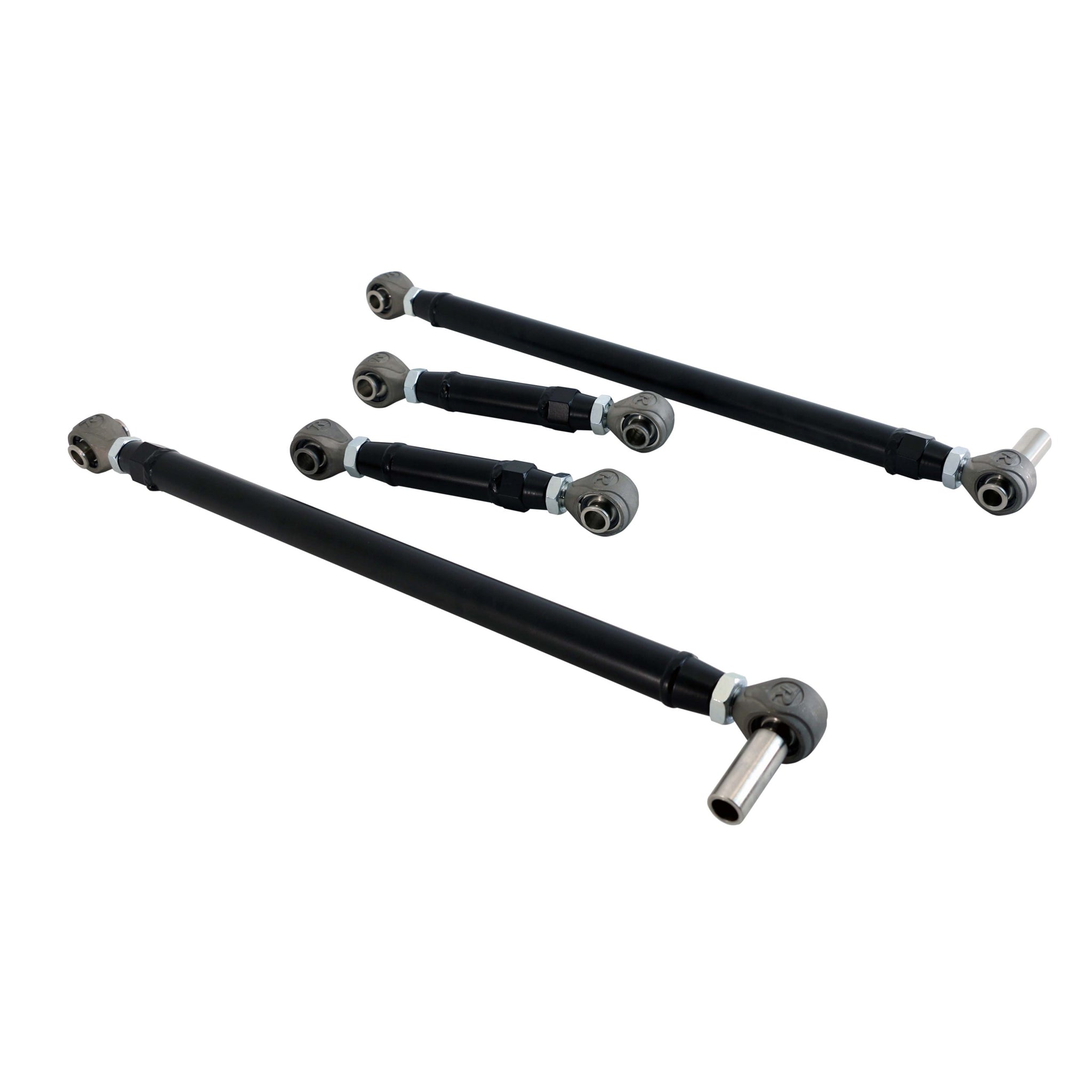 Replacement 4-Link bar kit with R-Joints, double adj. for 1968-1972 Nova (Old Design - Bars Canted Outward). Includes double adjustable upper and lower bars and R-Joint spacers. Powder coated satin black.