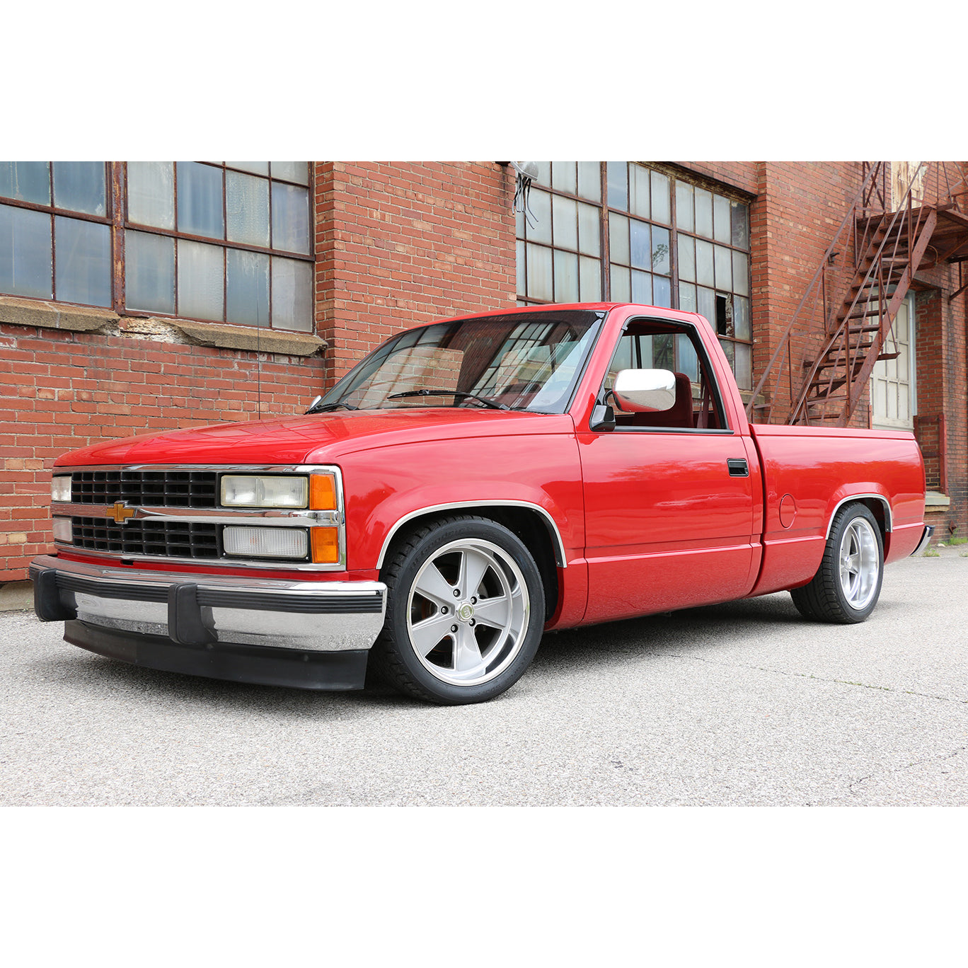 StreetGrip suspension system for 1988-1998 C1500, HD spindle and 10 bolt. Includes HD drop spindles, front lowering springs, c-notches, flip brackets, shock relocation brackets, front and rear HQ shocks and hardware.