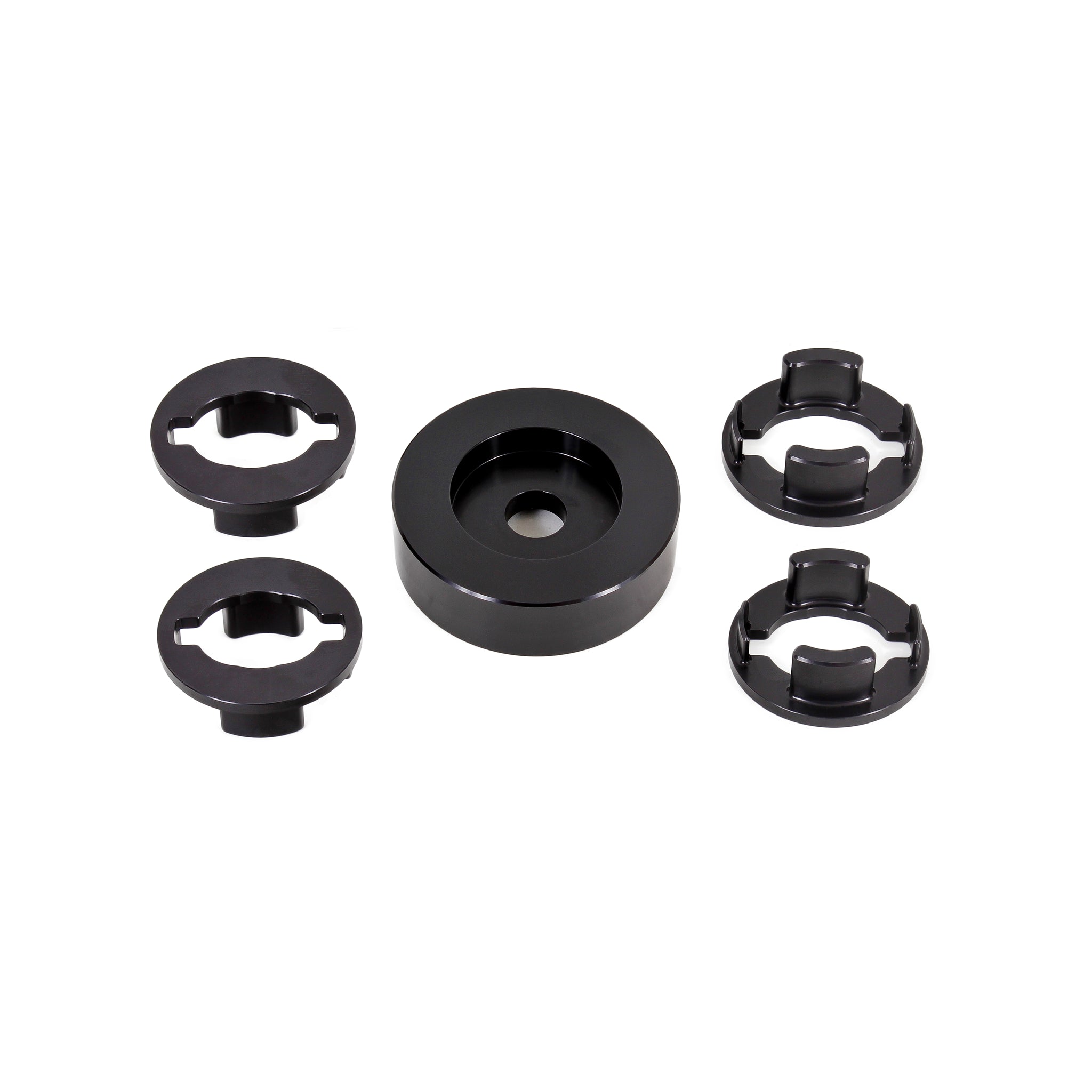 Minimize wheelhop and enhance the rear stability of your 2016 and newer Chevrolet Camaro by decreasing differential movement with a Differential Bushing Lockout Kit from BMR Suspension. The stock rubber bushing with large void are great for absorbing NVH, but do nothing for performance. The billet aluminum inserts in BMR s Differential Bushing Lockout Kit simply keep the bushing from deflecting. This non-permanent modification keeps the factory bushing in place, so NVH is nearly unchanged. BMR Suspension s Differential Bushings Lockout Kit (BK060) drastically decreases differential movement and pinion rise over the factory rubber bushings. BMR designed its Differential Bushing Lockout Kit from 6061-T6 billet aluminum. This material is extremely strong, without significant weight gains. Each bushing lockout plate is CNC-machined to exact shape and tolerances. This allows for a perfect fit and increased performance for any driving style. Designed for street performance, drag race, and handling applications, BMR Suspension BK060 Differential Bushing Lockout Kit is the perfect wheelhop solution for any Sixth Gen Camaro being used for performance driving. BMR s Differential Bushing Lockout Kit offers huge increases in performance over the stock rubber bushings. The OE bushings are designed with air pockets and are made from soft rubber. These voids , coupled with soft material produce excessive differential movement during normal and aggressive driving. BMR s Differential Bushing Lockout kit installs into the OE rubber bushing, nearly eliminating differential movement by filling the space in the factory bushings. This eliminates almost all differential movement, reducing wheelhop and increases handling stability, while giving you a much-improved overall feel in any performance driving situation. BMR Suspension s BK060 Differential Bushing lockout Kit is available in a durable black finish and comes with all necessary hardware.
