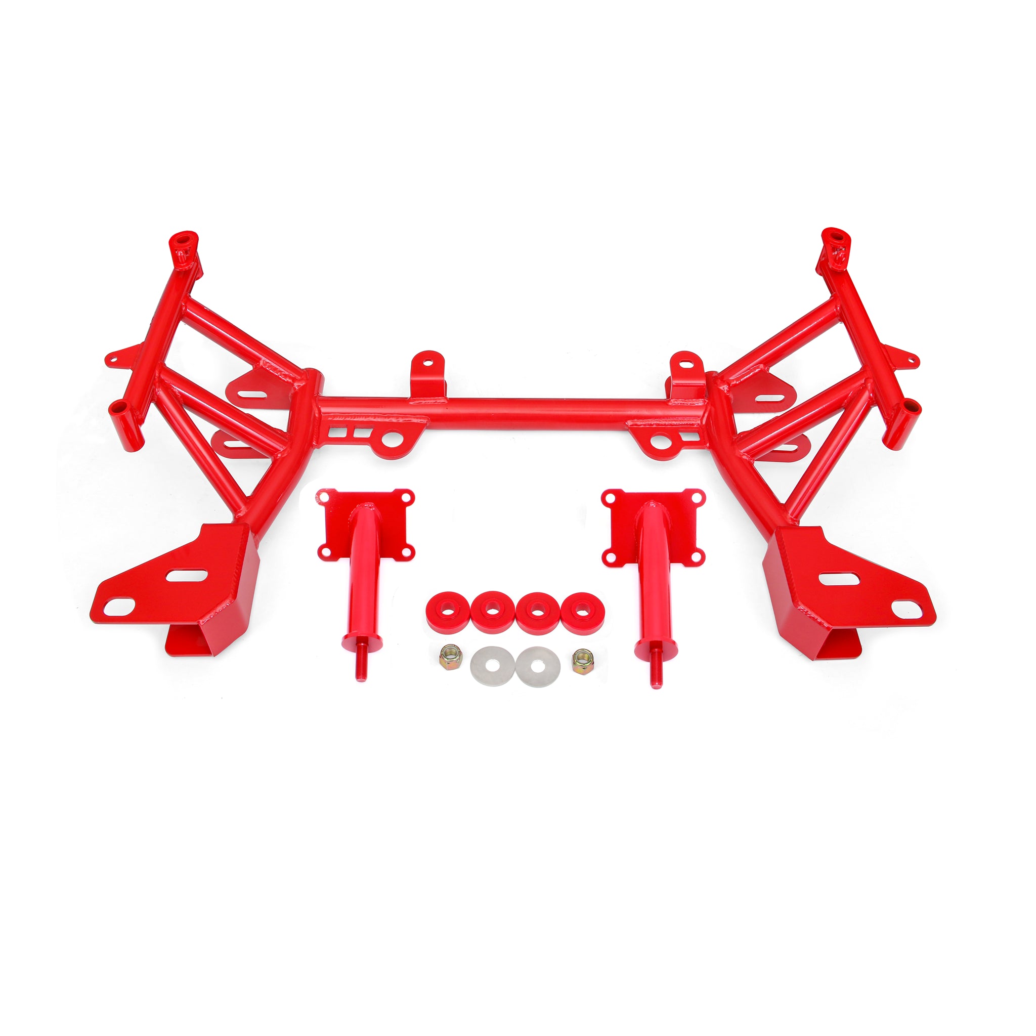 Reduce weight, increase frontend rigidity, and add clearance for large-tube headers and turbo kits with a Tubular K-members from BMR Suspension. BMR Tubular K-Members are designed to provide a lightweight alternative to the heavy and bulky factory K-member. Manufactured from 1-5/8-inch x 0.120 wall and 1-1/4-inch x 0.095 wall DOM tubing, BMR s K-members give you a lightweight, extremely strong K-member. Every BMR K-member is 100-percent bolt-in and requires no modifications for fitment. The K-members are built with provision for either factory or manual steering racks.