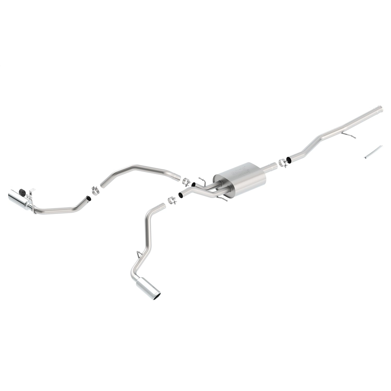 Description_MKT | Features bright chrome on T-304 stainless steel tips. Borla Cat-Back & Axle-Back multi-core technology is designed to unleash hidden horsepower. Increased exhaust velocity adds power, driving excitement, fuel economy, and the distinctive Borla Sound of Power respected by motoring enthusiasts everywhere. Each system is built from premium T-304 stainless steel, superior to T-400 series knockoffs (such as 409), to give you the absolute best in performance and durability. Ultra-smooth mandrel bends ensure maximum flow & power, and precision computer-controlled CNC manufacturing ensures an accurate fit. Best of all, Borla stands behind every system with a Million-Mile Warranty. Just what you?d expect from the world?s most experienced (and most winning) exhaust brand. |
