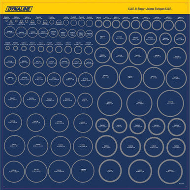 Includes a 24" x 24" display board with overlay, designed to organize and showcase a wide assortment of O-rings for clear product visibility in retail environments. Includes a 24" x 24" display board with overlay for organizing and showcasing a wide assortment of O-rings in retail or workshop environments.