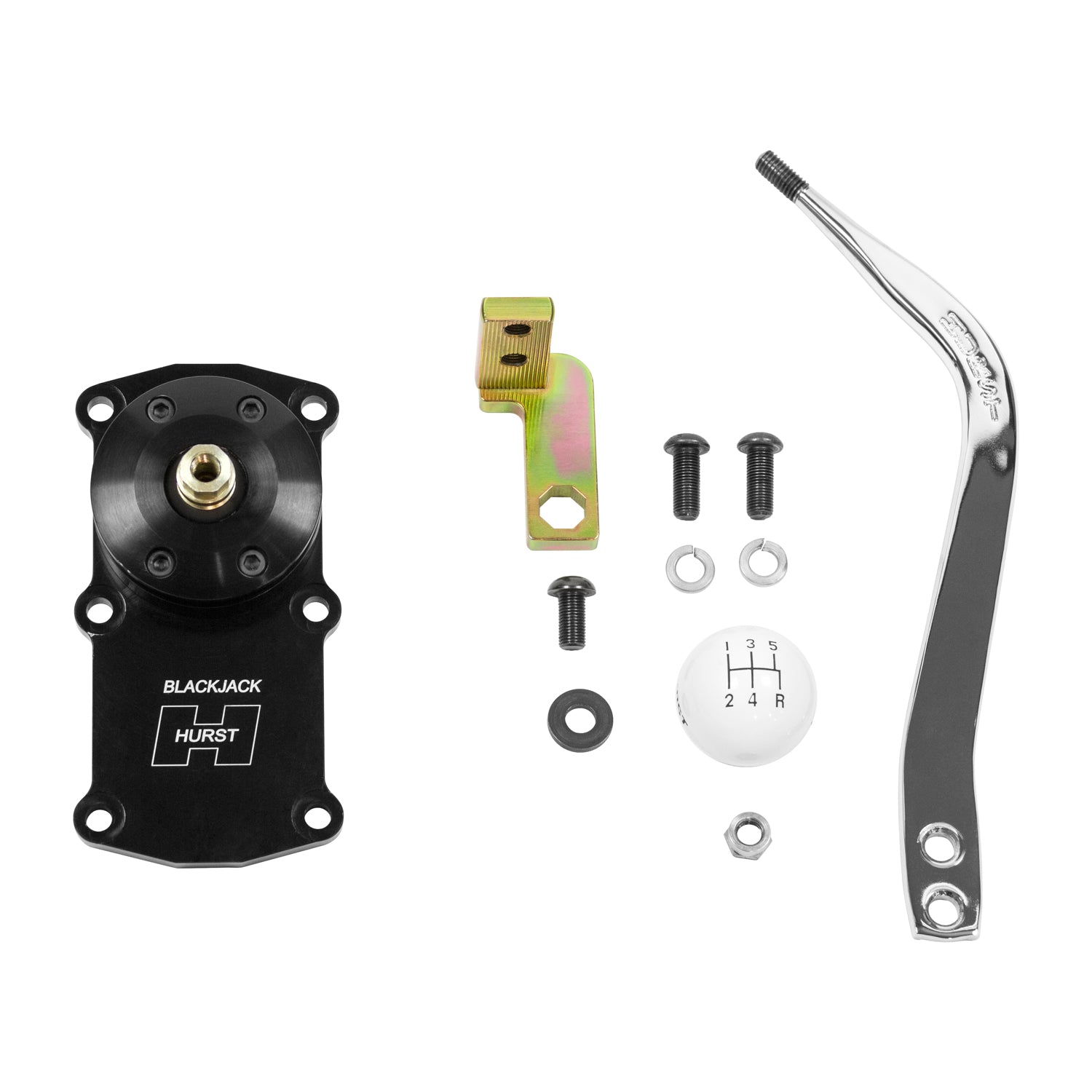 Description_FAB | Includes Classic Hurst Chrome Flat-blade Stick & White Shift Knob |