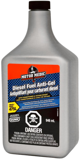 MOTOR MEDIC Diesel Fuel Anti-Gel 946ml is a powerful fuel additive designed to prevent diesel fuel from gelling in cold weather. It improves cold starts, protects fuel systems, and keeps engines running smoothly by lowering the pour point and preventing fuel line freeze-ups. Ideal for use in all diesel engines during winter months.
