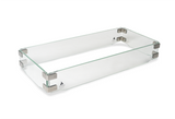 This glass fence shelters the flames from wind in a stylish manner; it provides a safety barrier with crystal-clear glass and sleek, polished edges.