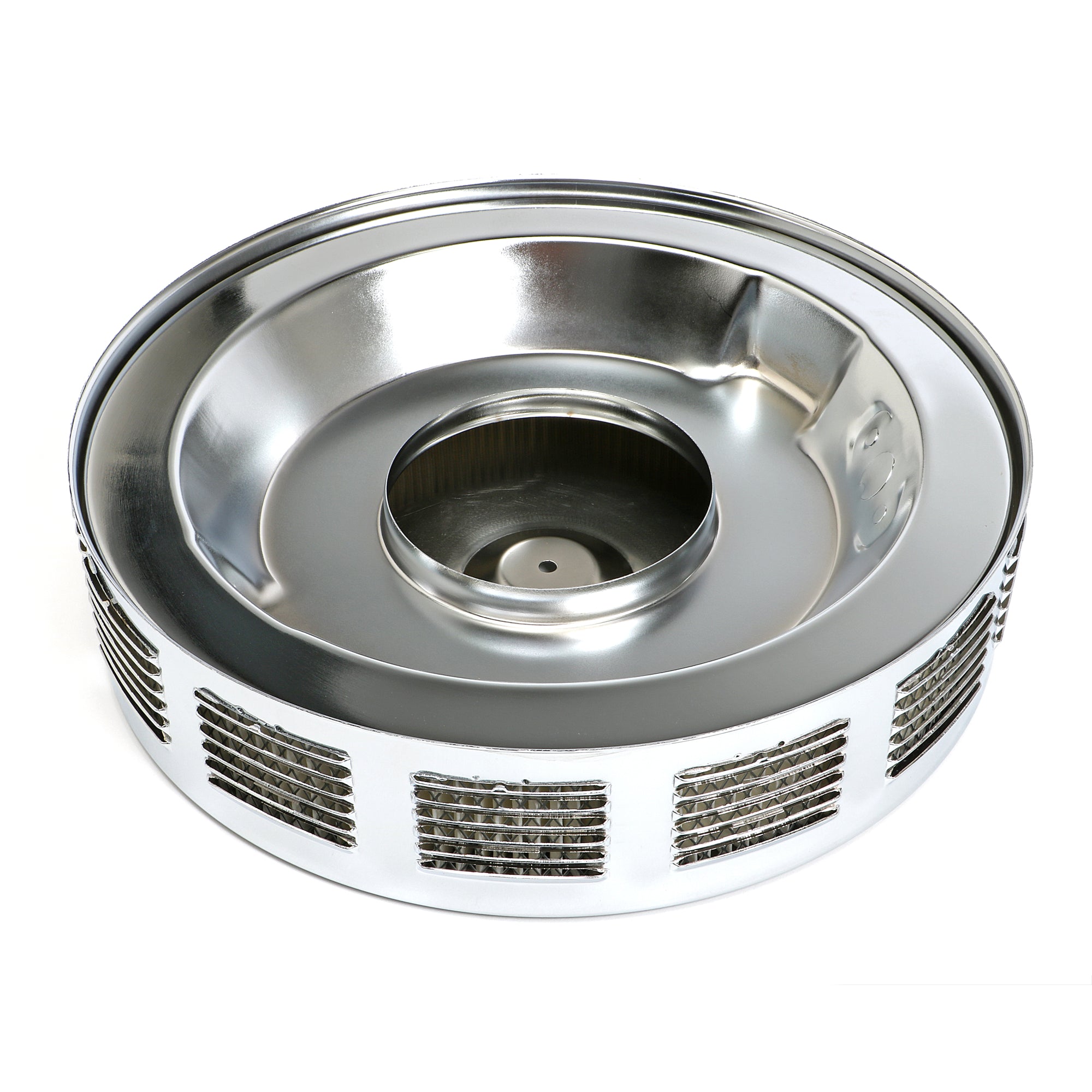 Trans-Dapt 2293 Louvered CORVETTE-Style Air Cleaner Set; 14 in. x 3 in., 5-1/8 in. Neck-CHROME