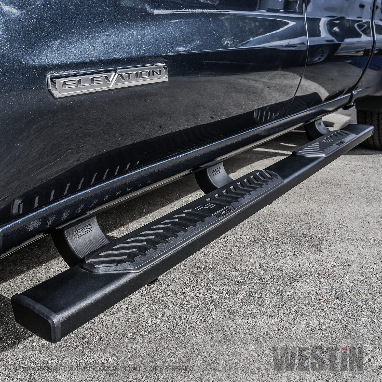 Description_MKT Westin R5 Nerf Step Bars have 5 inch wide step area with a unique molded polymer step pad design. R5 Nerf Step Bars are rocker panel mounted and include injection molded bracket covers for a full and stylized appearance. R5 LED Light Kit upgrade is available, sold separately.