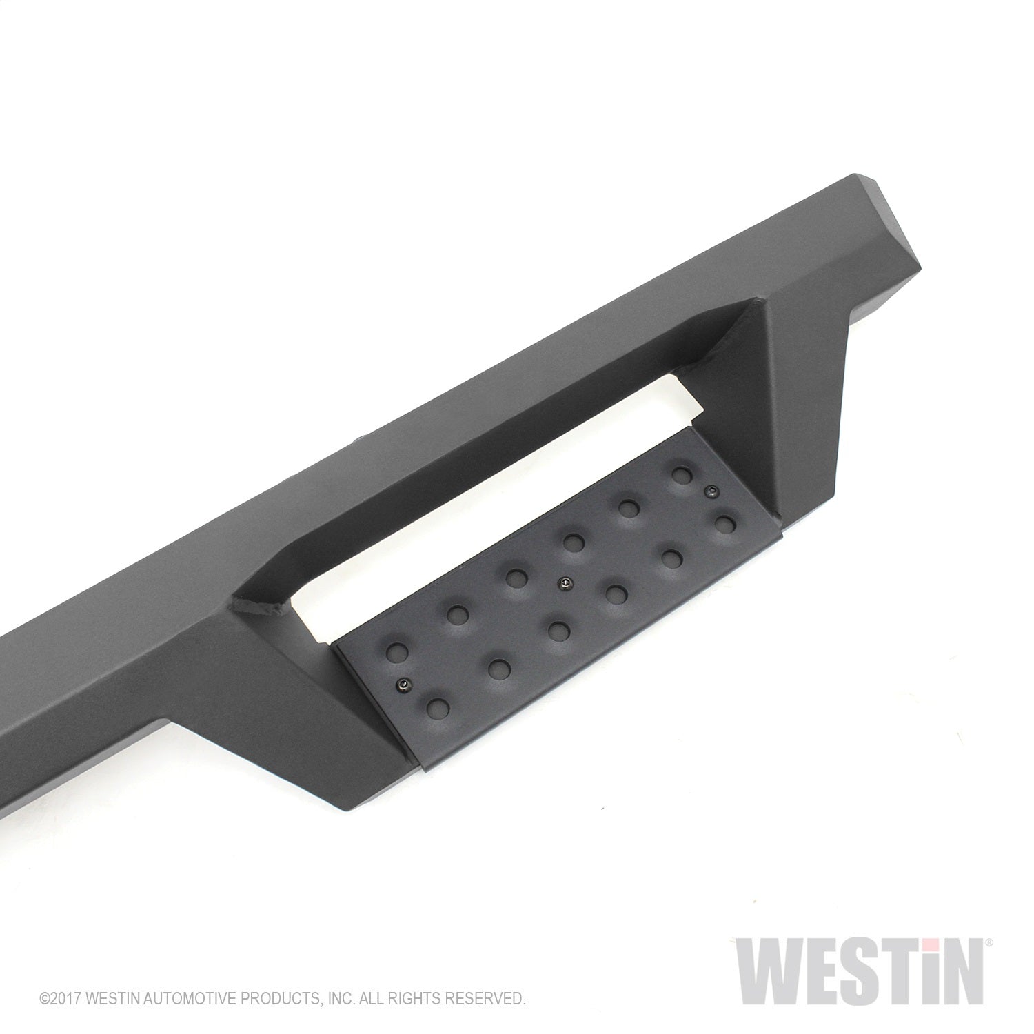 Westins HDX Drop Wheel-to-Wheel Nerf Step Bars feature a notched bar design with a 3rd step location for easy bed access. They provide strong traction with over 2 inches more of toe/heel step area than our Westin's HDX Drop W2W Nerf Step Bars include an added 3rd step location for easier bed area and cargo access. HDX also boasts more than 2 inches of added toe/heel step area which far exceeds all other competitive brands. HDX's notched bar design construction results in a reliable long lasting Bar, with a solid fit and a rugged look. The added length of HDX Drop Wheel-to-wheel Nerf Step Bars provides users with better cab access and better footing and traction for both drivers and passengers. Product includes mount kit and is offered in a variety of vehicle specific applications. Bolt-on installation so no drilling required. Mount kit included. Westin's exclusive Isolator Bracket supports the step bar past the truck cab, a feature that competitors do not offer. Without an Isolator Bracket, the step area that extends past the vehicle is left unsupported. Our unique design provides extra bed support without resulting in annoying creaking sounds.