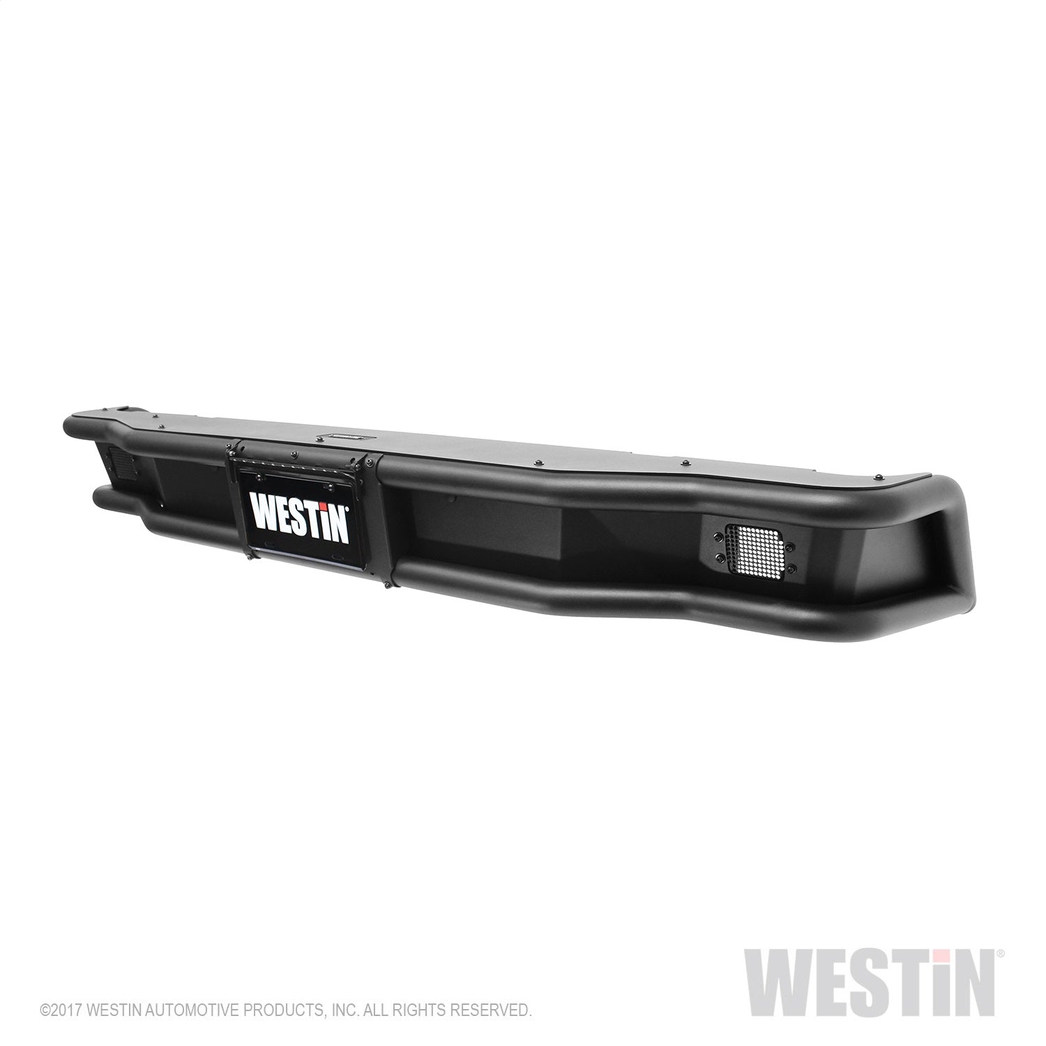 Westins Outlaw Rear Bumper is made of 14 gauge steel with a 2 diameter frame. It features a retractable license plate holder that hides your trucks receiver hitch and includes mount points for optional back lighting. Add one of Westins Class III/IV hitches to do the heavy-lifting and pull your weight when you need it. Our Outlaw Rear Bumper is available for vehicles that come with or without back-up sensors. Installation is bolt-on so no drilling is required. Mount kit included. Available in textured black finish.