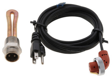 Copper element for use in engine block coolant; Not model specific; Measure space and determine threading at installation location; Ensure quick winter starts; Most efficient type of heater; Direct OEM replacement in many applications; Includes power cord